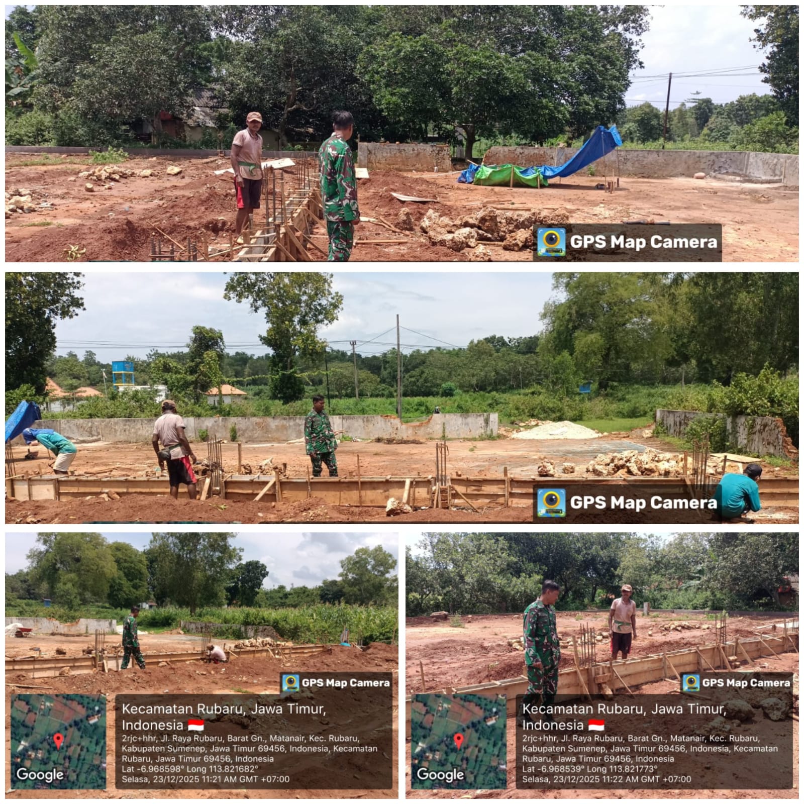 Sumenep – Babinsa Koramil 13/Rubaru, Kodim 0827/Sumenep, melakukan pendampingan dan pengawalan kegiatan pembangunan Koperasi Desa Merah Putih di Dusun Peangan, Desa Tambaksari, Kecamatan Rubaru, Kabupaten Sumenep, Selasa (23/12/2025).