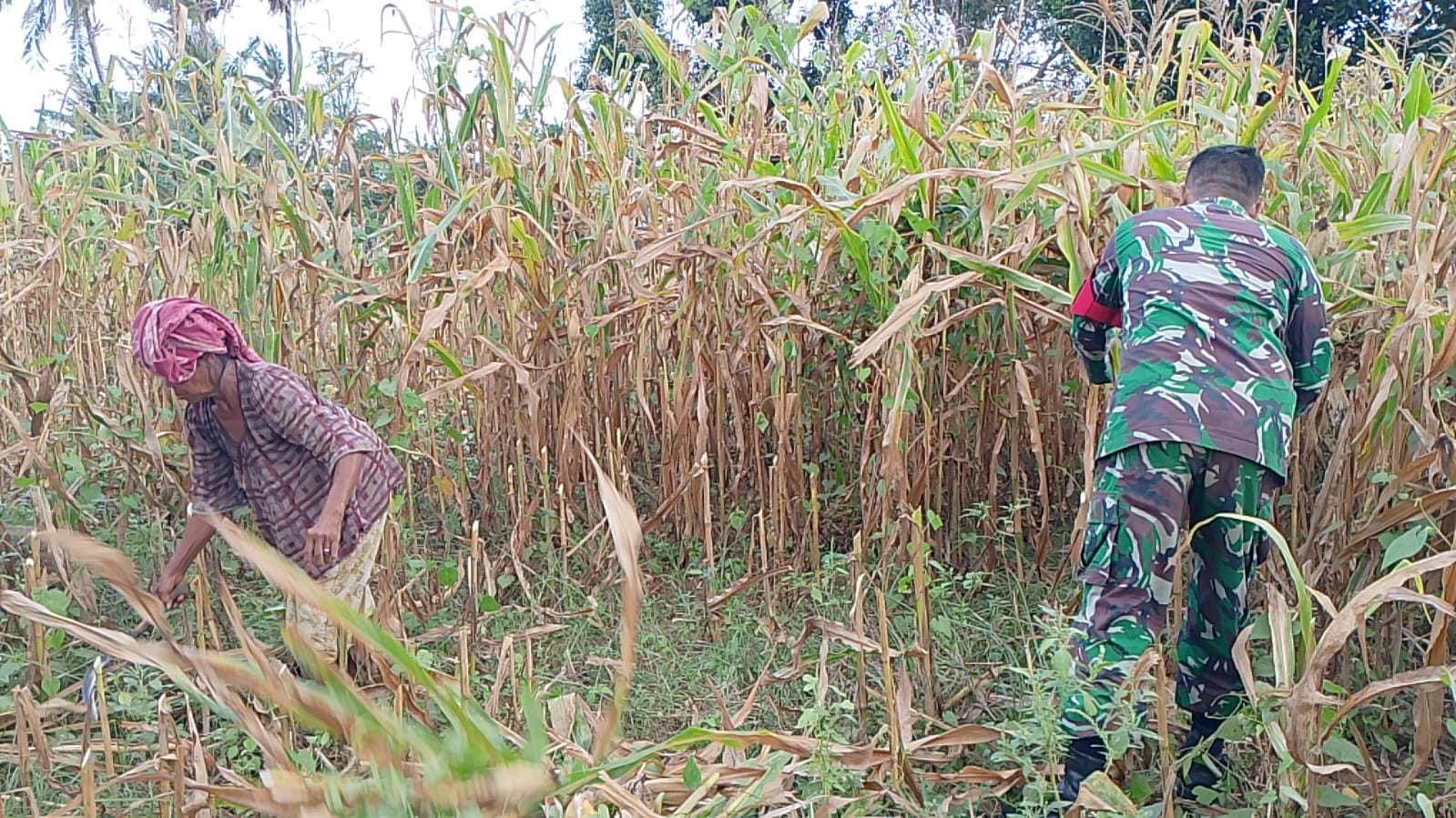 SUMENEP – Dalam upaya memperkuat kemanunggalan TNI dengan rakyat serta mendukung program ketahanan pangan nasional, Babinsa Koramil 12/Dasuk, Serda Agus, turun langsung membantu petani melaksanakan panen jagung di lahan pertanian Desa Dasuk, Kecamatan Dasuk, Kabupaten Sumenep, Madura, Jawa Timur, Selasa (28/10/2025).