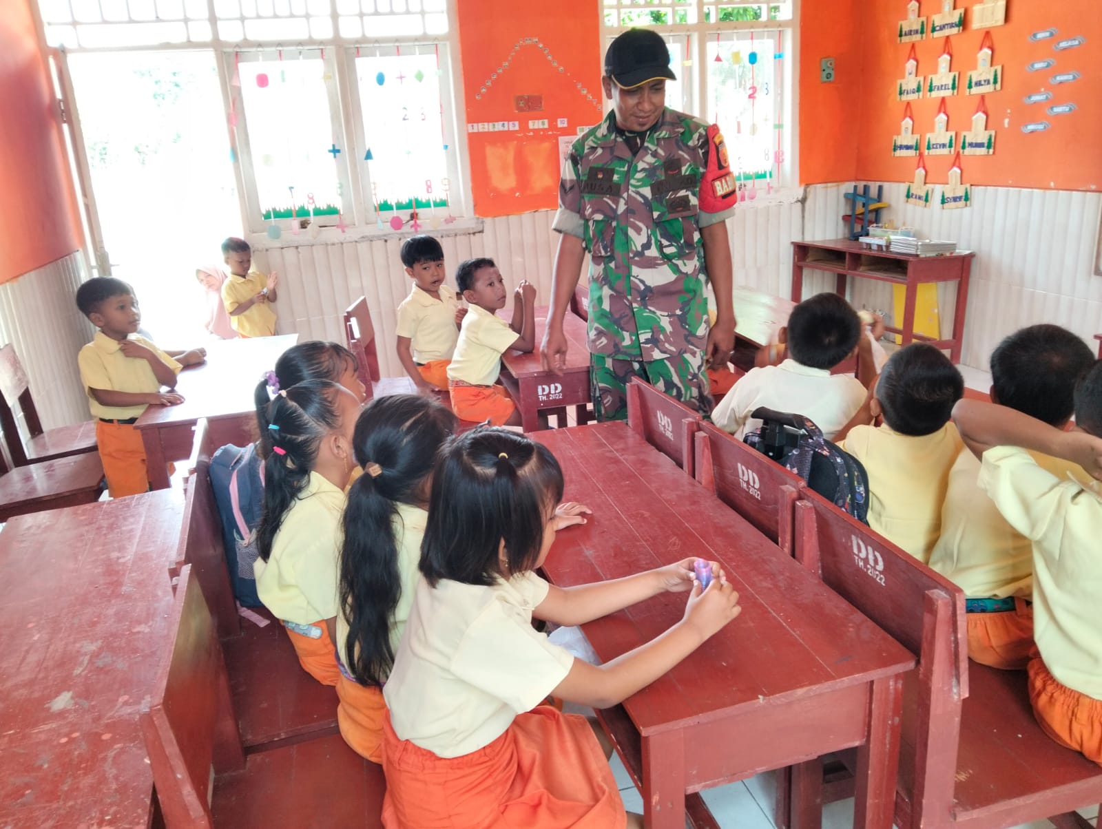SUMENEP — Dalam rangka meningkatkan kedekatan dengan masyarakat serta menanamkan nilai nilai kedisiplinan sejak usia dini, Babinsa Koramil 0827/06 Saronggi, Serda Jusa, melaksanakan kegiatan masuk sekolah di TK Tunas Bangsa yang berlokasi di Desa Kebun Dalap, Kecamatan Saronggi, Kabupaten Sumenep, Madura, Jawa Timur, pada Selasa (28/4/2026).