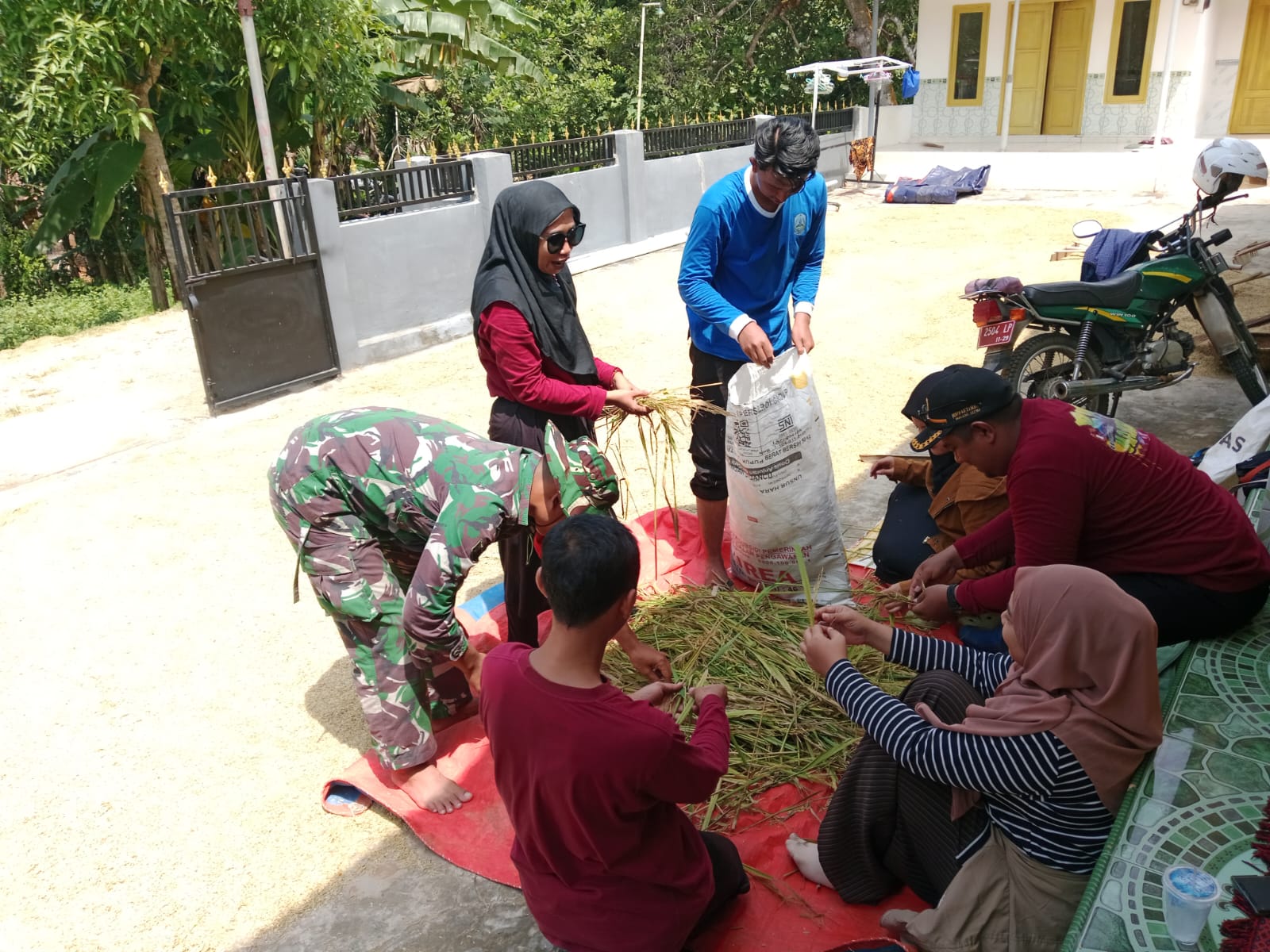 SUMENEP – Sebagai bentuk dukungan terhadap program ketahanan pangan nasional, Bintara Pembina Desa (Babinsa) Koramil 03/Manding Sertu Bintoro bersama Petugas Penyuluh Lapangan (PPL), melaksanakan kegiatan pengubinan hasil panen padi petani di Desa Gadding, Kecamatan Manding, Kabupaten Sumenep, Senin (07/07/2025).
