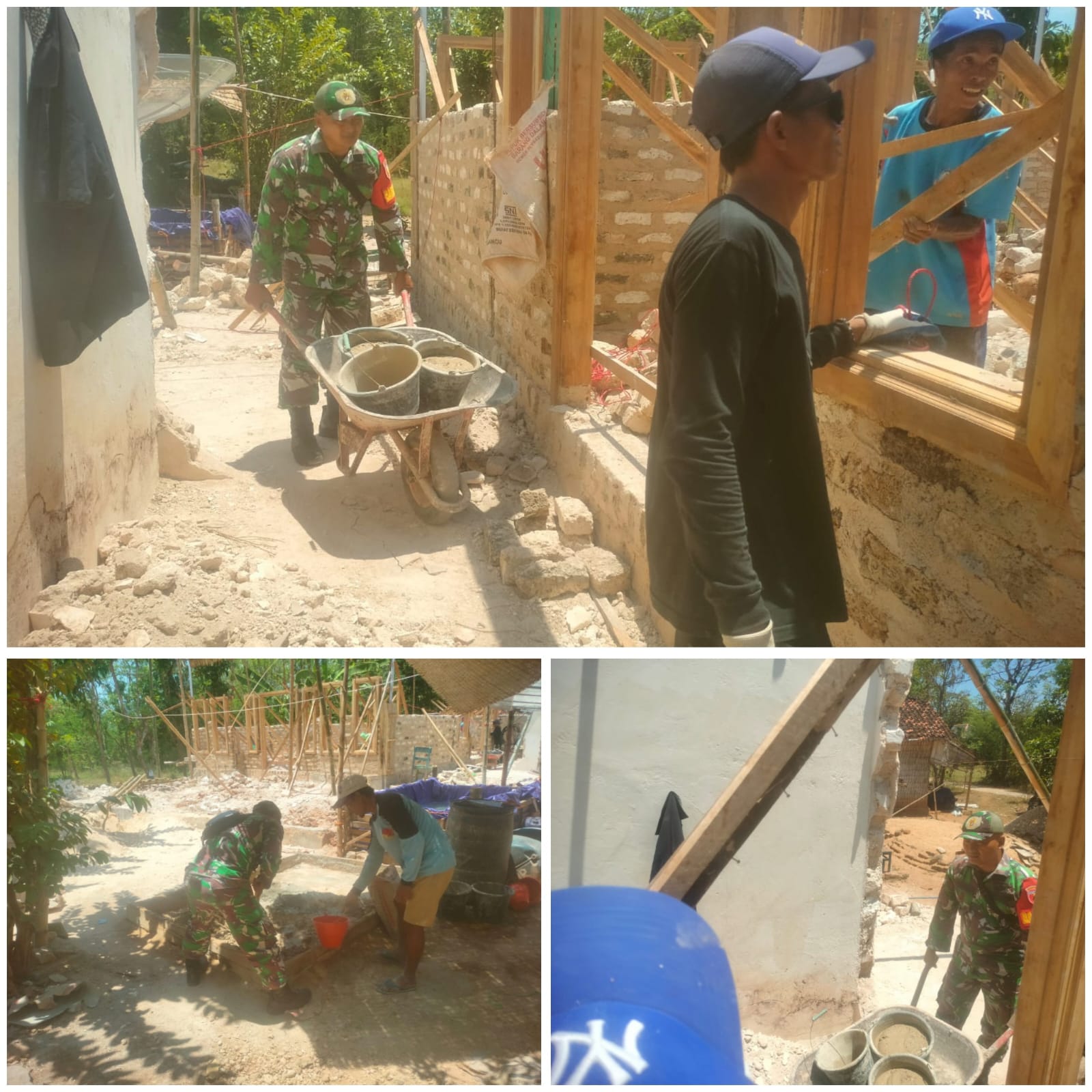 Kegiatan karya bakti tersebut dilakukan bersama masyarakat setempat dengan membantu proses pembangunan rumah, mulai dari pengangkutan material hingga pekerjaan konstruksi. Kehadiran Babinsa di tengah masyarakat disambut antusias oleh warga yang turut serta bergotong royong.