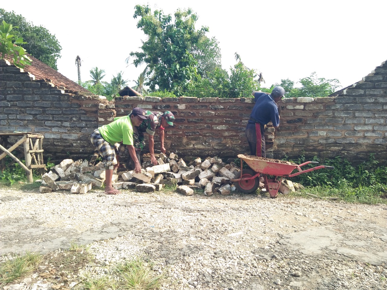 SUMENEP – Pupuk semangat gotong royong, Babinsa Desa Banjar Barat Koramil 16/Gapura Kodim 0827/Sumenep Serka Rasul bersama masyarakat melaksanakan Karya Bhakti pembangunan pagar rumah warga binaan yang berada di Desa Banjar Barat Kecamatan Gapura Kabupaten Sumenep, Minggu (5/10/2025).