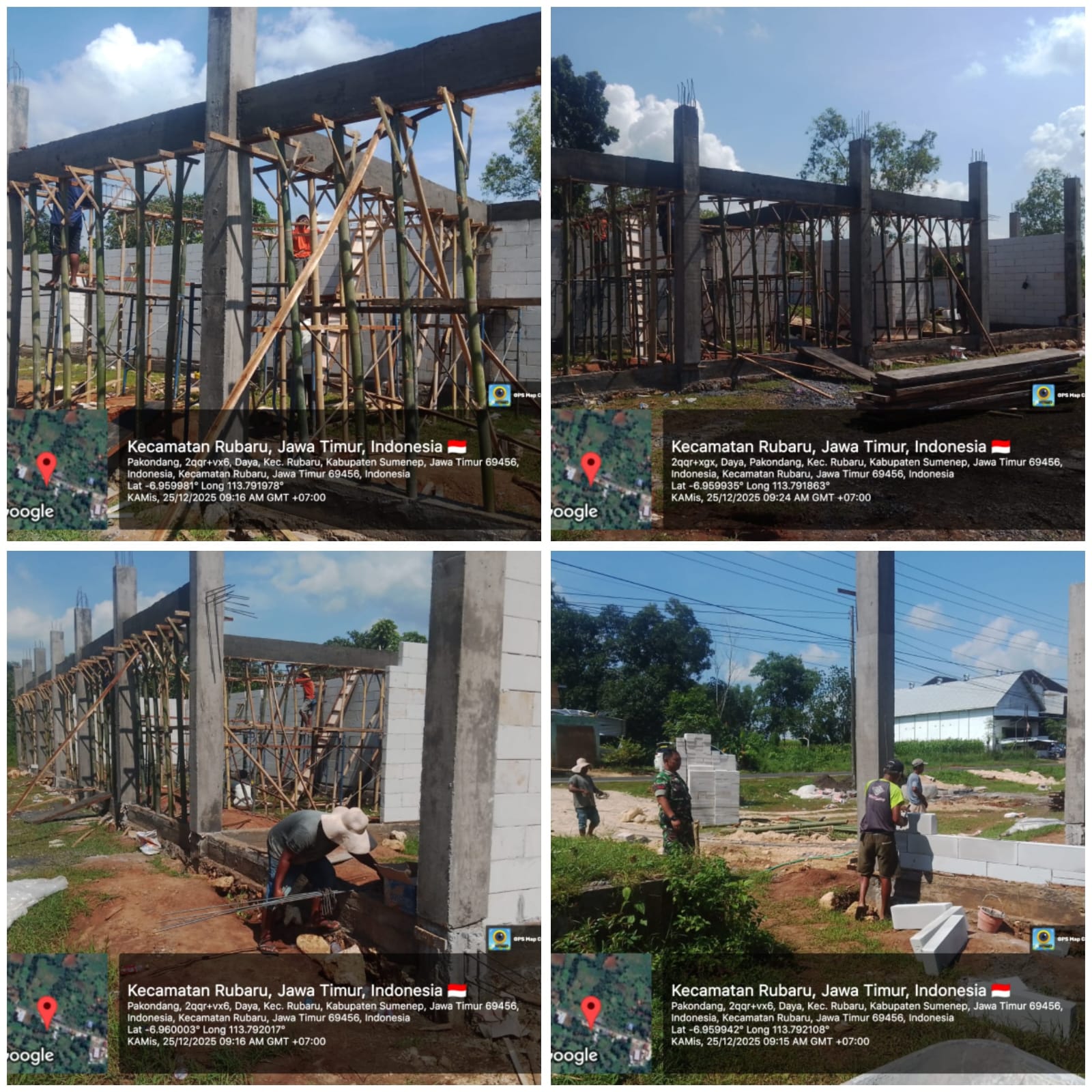 Babinsa Koramil 0827/13 Rubaru, Koptu Kalvori Ariyanto, turun langsung melakukan pendampingan sekaligus pemantauan pembangunan pada Kamis (25/12/2025) sejak pukul 09.40 WIB hingga selesai.