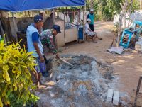 Dikatakan Babinsa, mengaduk campuran semen ini guna untuk bahan cor bangunan rumah, sehingga kegiatan mencampur ini tidak dilakukan satu orang sehingga pekerjaan cepat terselesaikan.