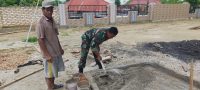 Dikatakan Babinsa Budi, mengaduk campuran semen ini guna untuk bahan cor bangunan rumah, sehingga kegiatan mencampur ini tidak dilakukan satu orang sehingga pekerjaan cepat terselesaikan.