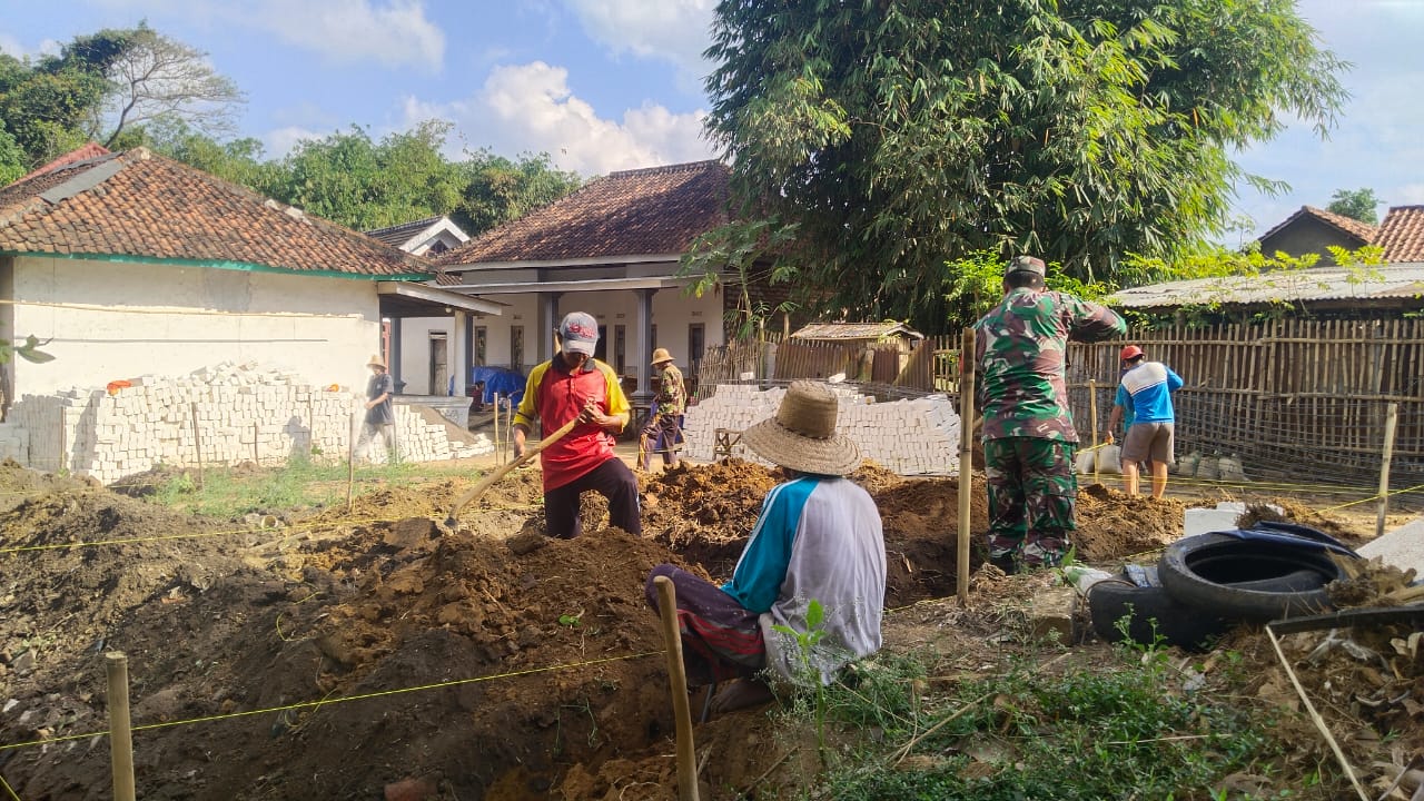 SUMENEP – Guna terciptanya sinergitas TNI bersama rakyat, Babinsa Koramil 11/Pasongsongan Kodim 0827/Sumenep Serda Sidik melaksanakan karya bakti membantu warga binaannya membangun rumah di Desa Rajun Kecamatan Pasongsongan Kabupaten Sumenep, Jumat (26/9/2025).