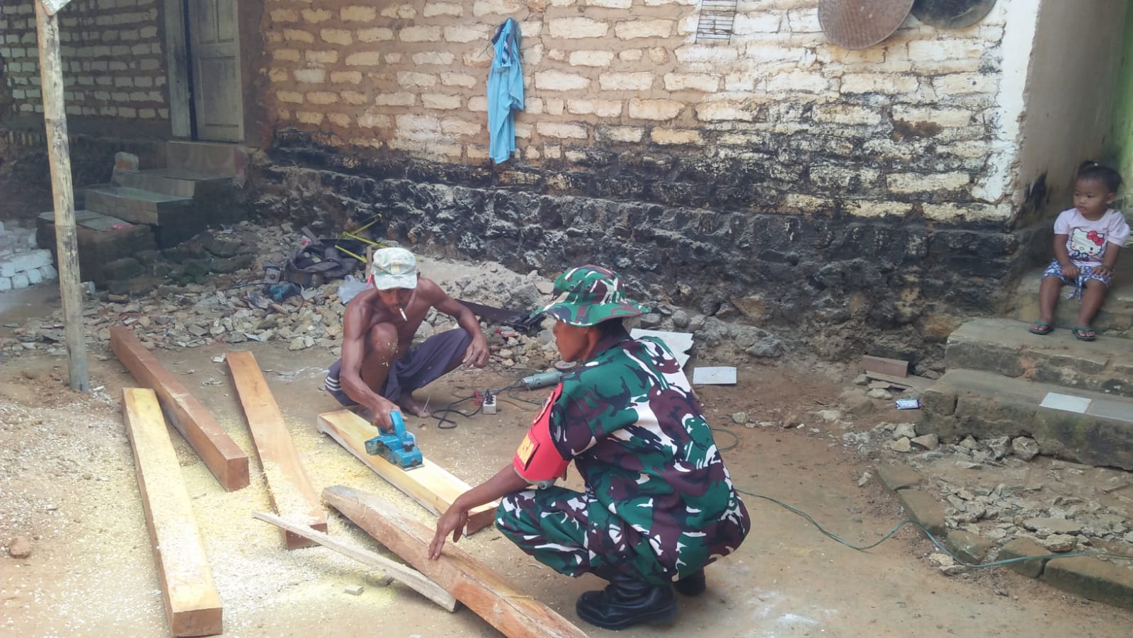 “Sebagai Babinsa, sudah menjadi tanggung jawab saya untuk selalu berada di tengah-tengah warga, baik dalam kegiatan sosial, kerja bakti, maupun membantu pekerjaan seperti ini.