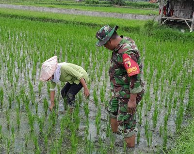 “Harapannya, hasil produksi padi nanti bisa maksimal, sehingga bisa membantu perekonomian petani binaan kami,” harap Sertu Moh. Hasyim. (Pendim 0827/Sumenep)