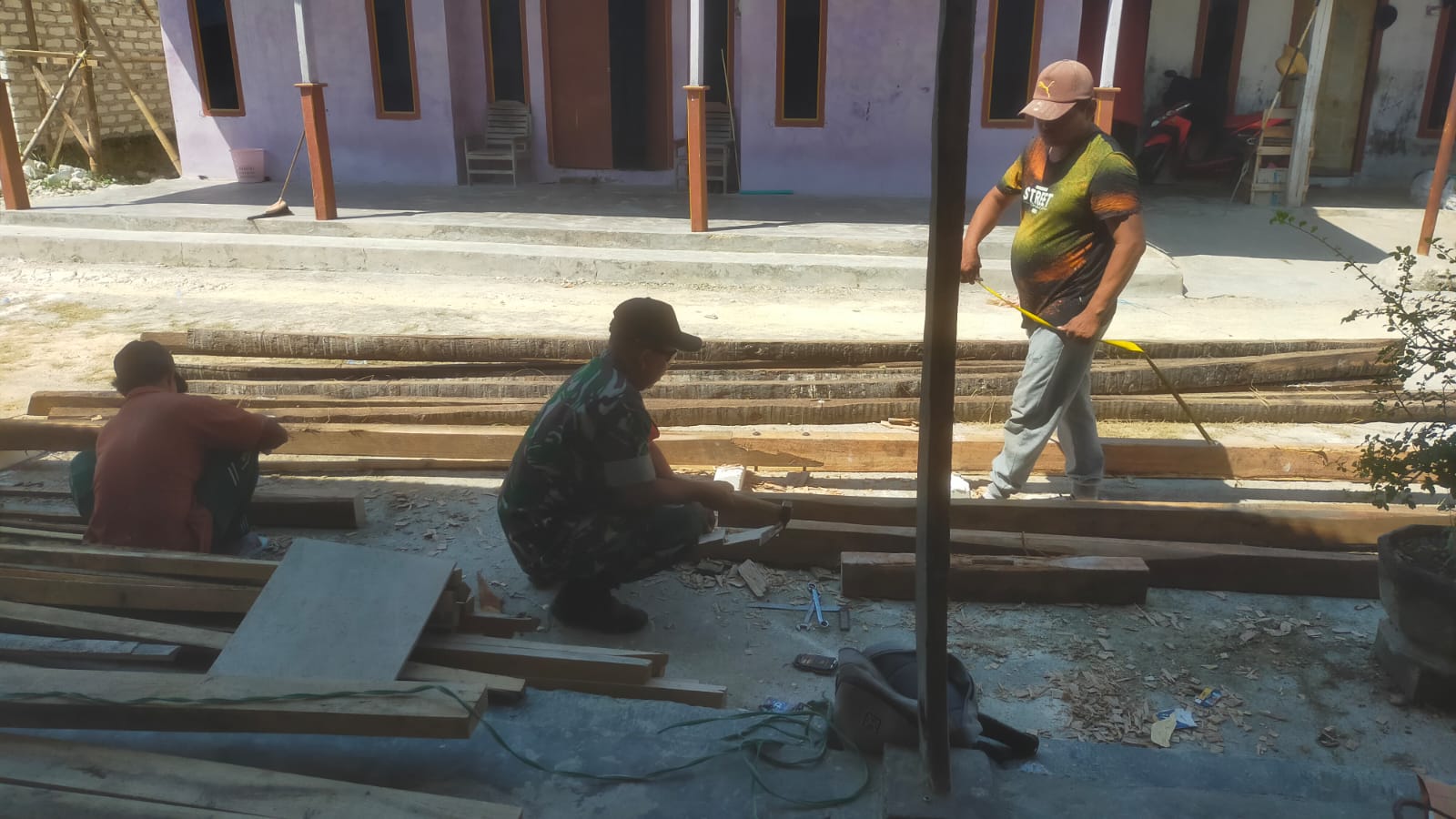 SUMENEP – Guna terciptanya sinergitas TNI bersama rakyat, Babinsa Koramil 09/Pragaan Kodim 0827/Sumenep Sertu Rudi Misyanto melaksanakan kegiatan karya bakti (karbak) membantu pembangunan rumah warga binaan bersama masyarakat yang terletak di Desa Pakamban Laok Kecamatan Pragaan Kabupaten Sumenep, Selasa (12/8/2025).