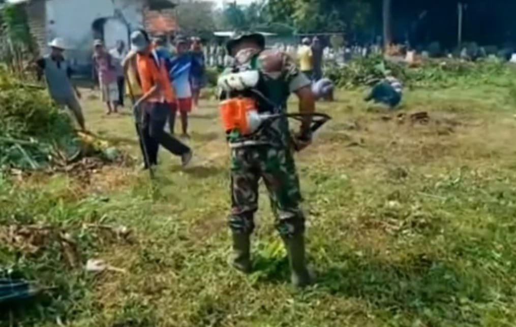 SUMENEP – Dalam rangka menjaga kebersihan lingkungan sekaligus menjalin kemanunggalan TNI dengan rakyat, Babinsa Koramil 06/Saronggi Serka Abioso bersama warga Desa Tanjung, Kecamatan Saronggi, Kabupaten Sumenep, melaksanakan kegiatan kerja bakti membersihkan area makam desa, Rabu (8/10/2025).