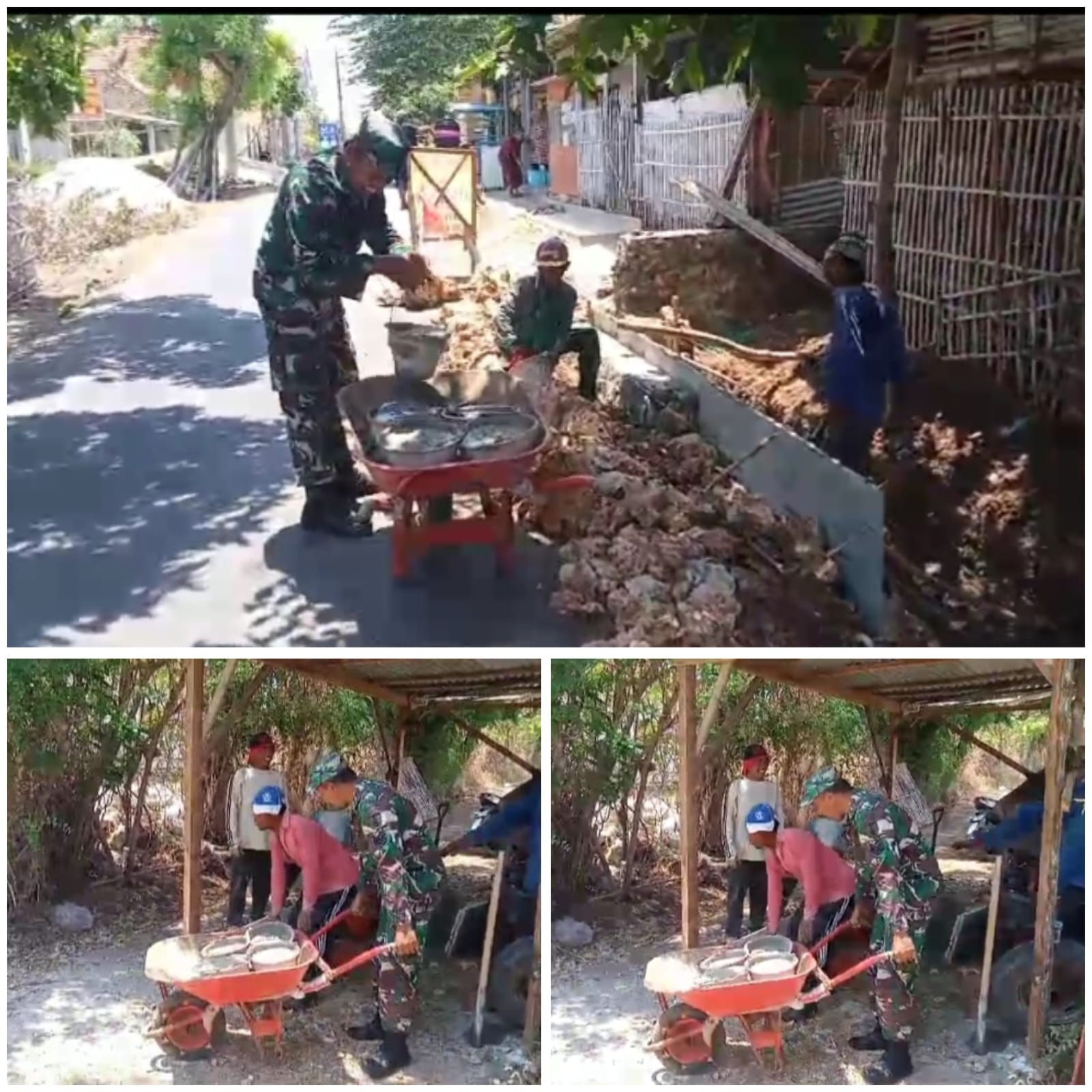 SUMENEP – Babinsa Koramil 0827/21 Ra’as, Serka Hartono, bersama warga melaksanakan kegiatan kerja bakti pengecoran jalan berlubang di Desa Keropoh, Kecamatan Ra’as, Kabupaten Sumenep, Madura, Jawa Timur, pada Jum’at (02/01/2026).