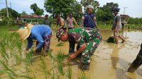 Bantu Petani Mencabut Bibit Padi, Babinsa 16 Gapura Terjun Langsung Ke Sawah