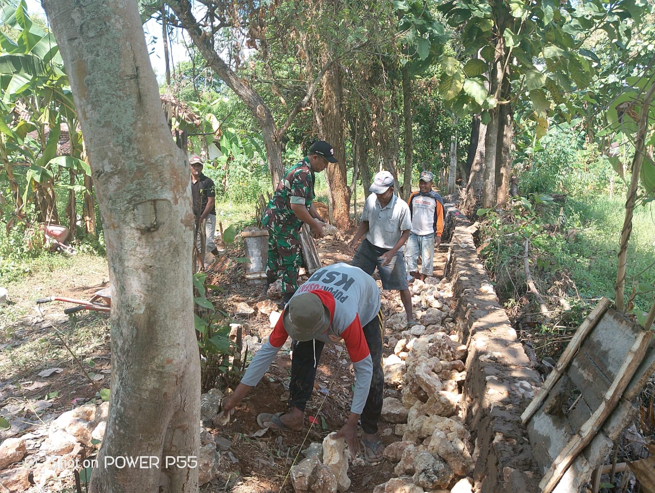 Di lokasi pembangunan, tampak Babinsa Serka Budi Setiawan bersama sejumlah warga sedang mengerjakan pembangunan drainase. Serka Budi tampak memberikan semangat kepada seluruh warga yang turut dalam proses pembangunan drainase tersebut.