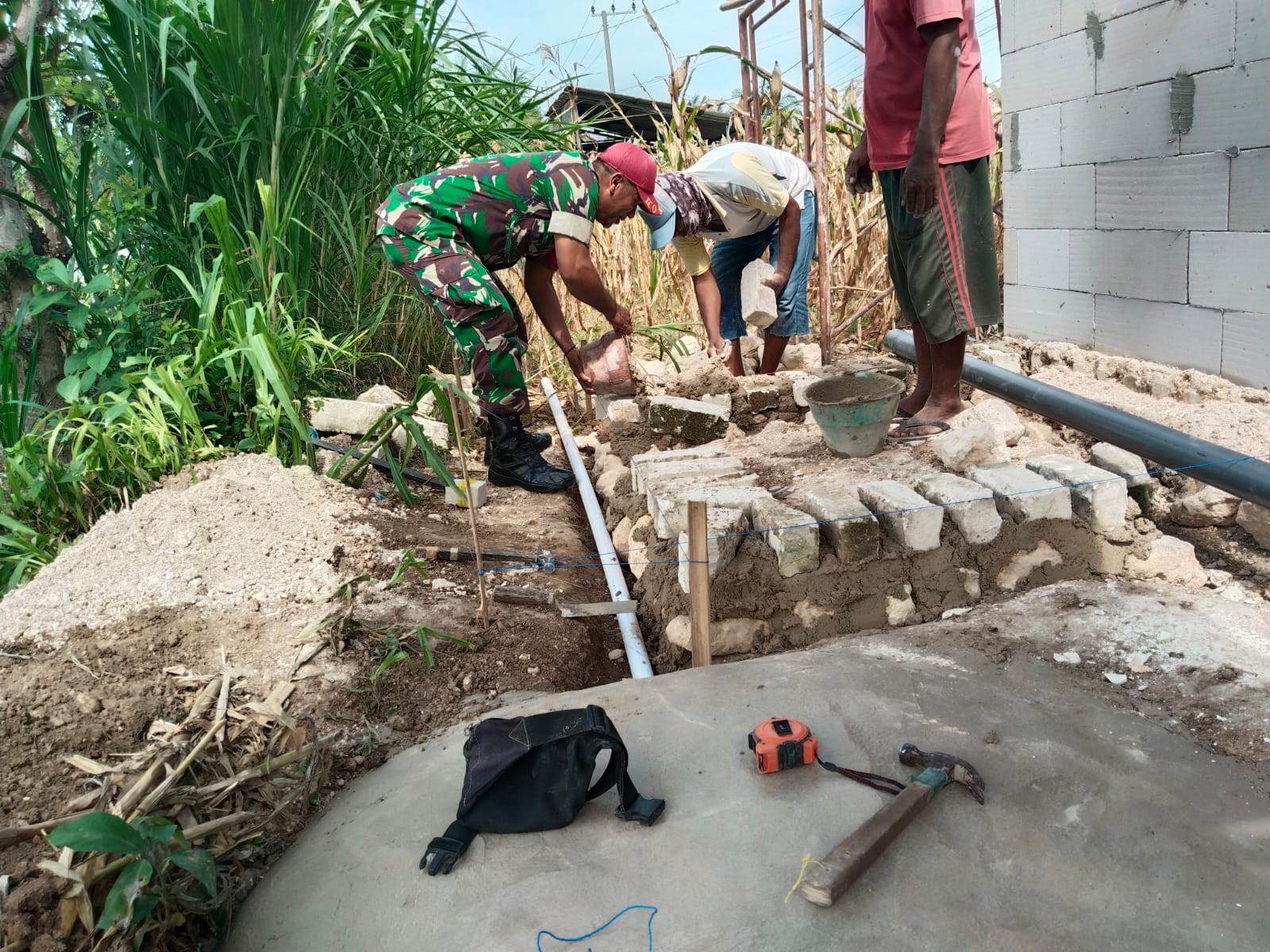 Sumenep – Dalam rangka meningkatkan kesejahteraan masyarakat dan memupuk rasa kebersamaan Babinsa Koramil 04/Bluto Kodim 0827/Sumenep Sertu Muhammad Afik bersama warga membantu membangun rumah masyarakat di Desa Lobuk Kecamatan Bluto Kabupaten Sumenep, Jumat (8/8/2025).