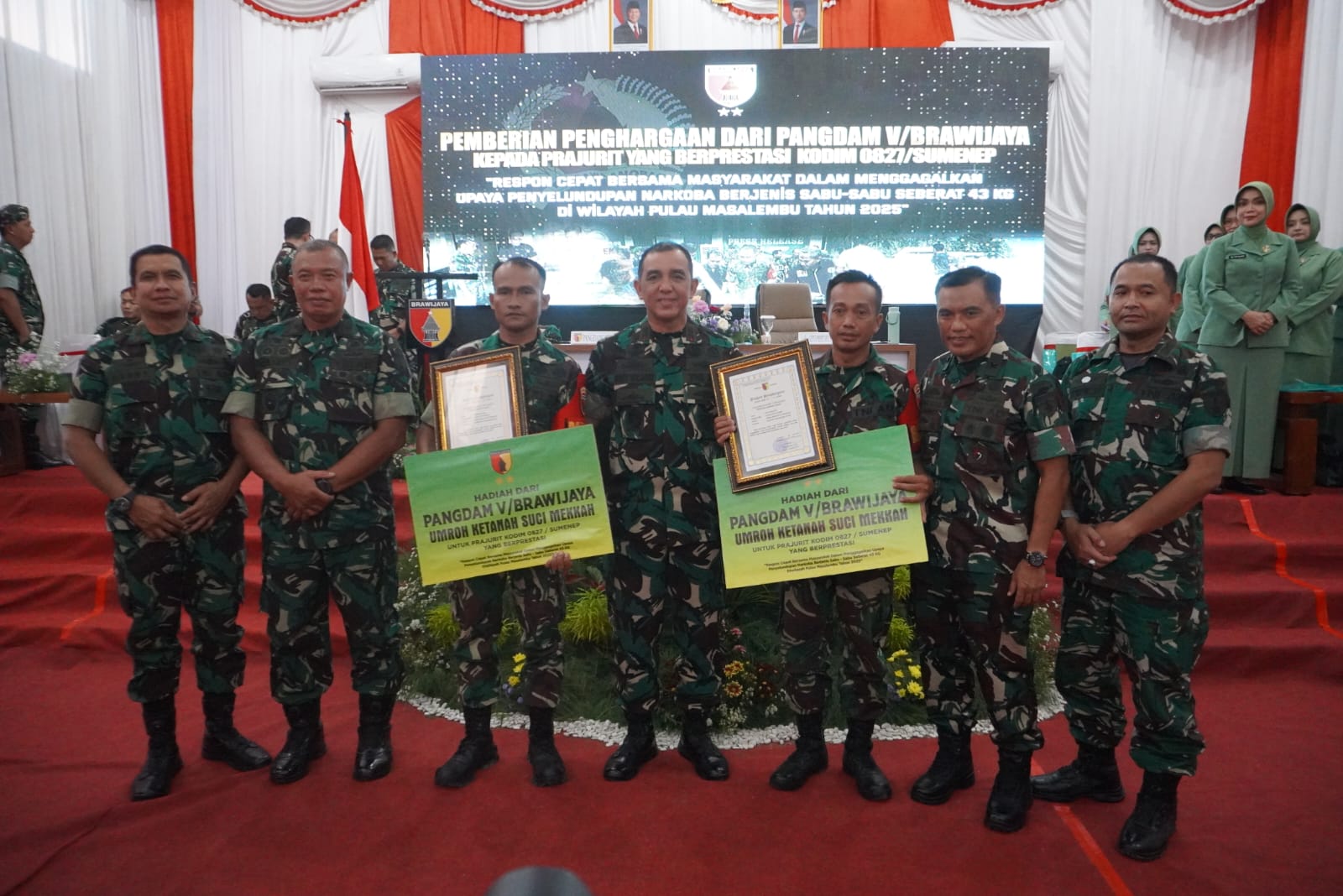 Dalam kesempatan itu, Pangdam Mayjen TNI Rudy Saladin secara langsung memberikan prioritas mengikuti pendidikan pada kesempatan pertama. Selain itu memberi kesempatan umroh bagi yang muslim dan wisata religi di Yerussalem kepada ketiga orang Prajurit Koramil 0827/22 Masalembu yang berhasil menggagalkan upaya penyelundupan narkotika jenis sabu-sabu di wilayah tugasnya.