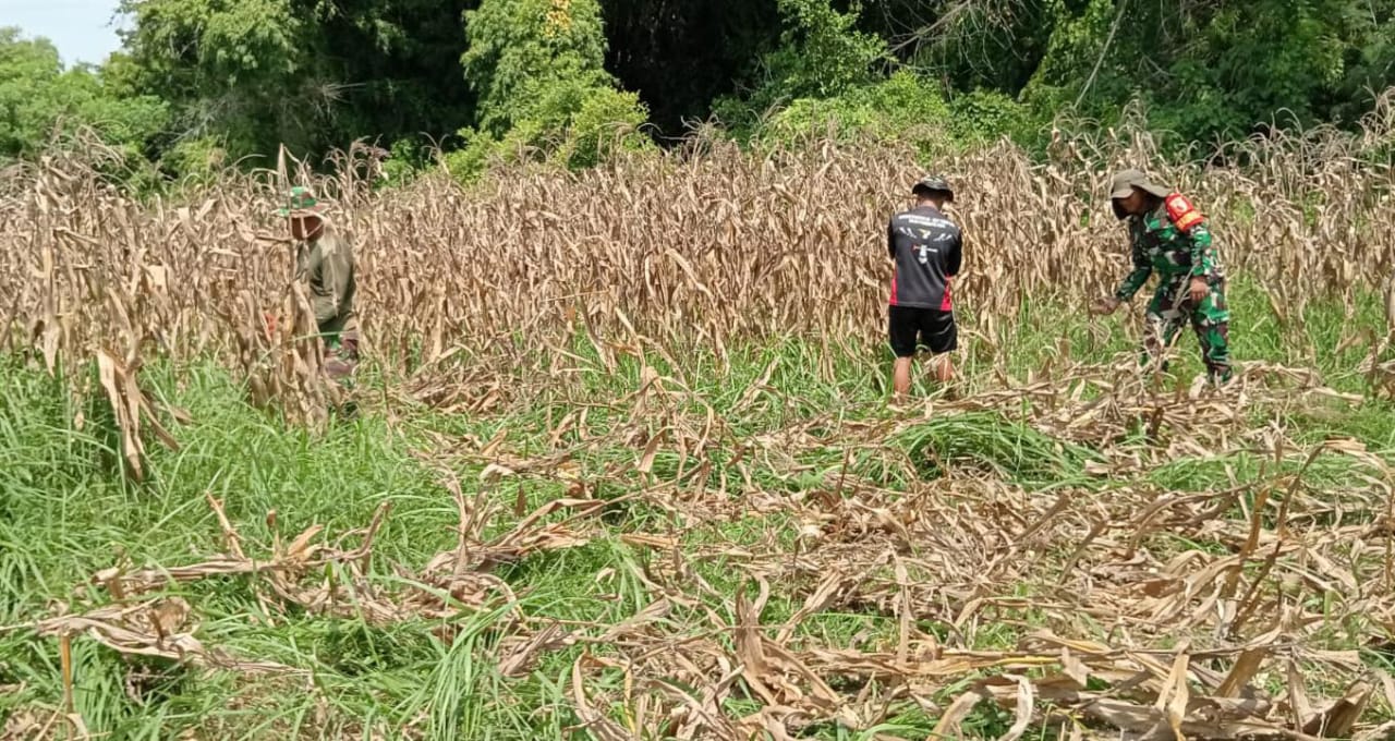 SUMENEP – Demi suksesnya program pemerintah untuk swasembada pangan, segenap anggota Koramil 0827/23 Giligenting turun ke sawah panen jagung pipil bersama petani di Desa Bringsang, Kabupaten Sumenep.