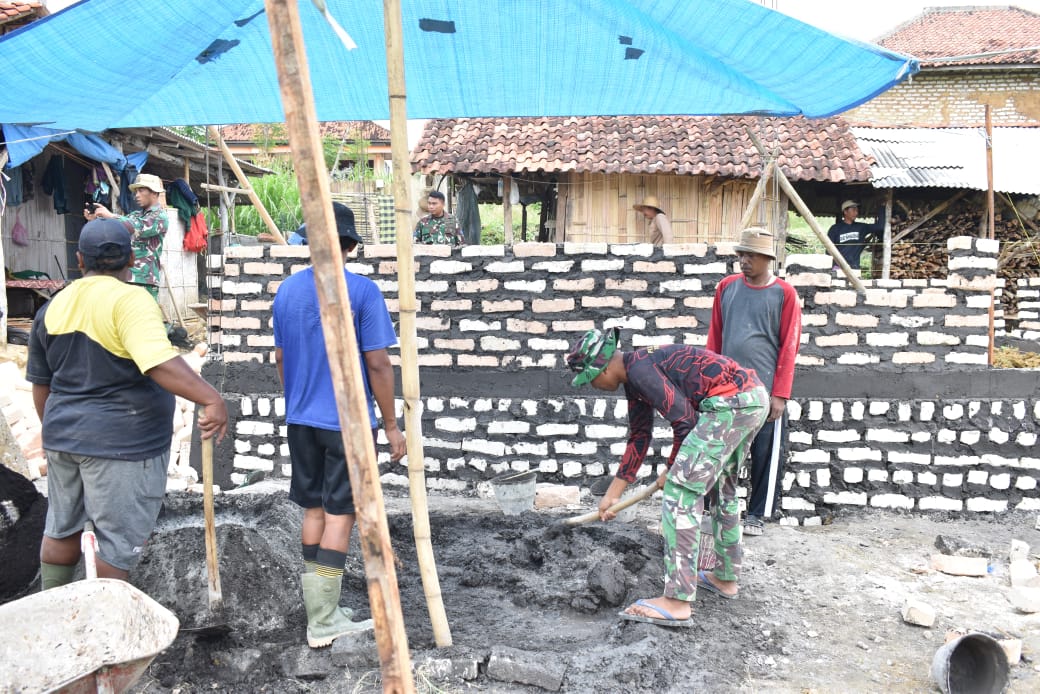 SUMENEP – Perubahan signifikan tampak pada rumah milik Sami di Dusun Karang, Desa Mandala, Kecamatan Rubaru, Kabupaten Sumenep, Jawa Timur. Melalui program TNI Manunggal Membangun Desa (TMMD) ke-127 Kodim 0827/Sumenep, rumah yang sebelumnya berdinding anyaman bambu kini mulai berdiri kokoh dengan pasangan batu bata.