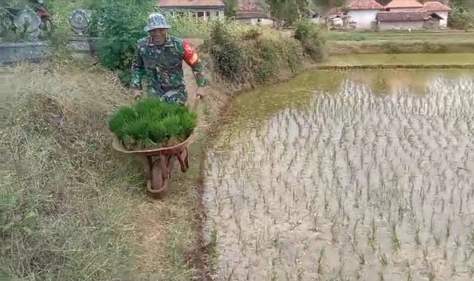 SUMENEP – Sebagai wujud kepedulian dan dukungan TNI terhadap ketahanan pangan, Babinsa Koramil 15/Batu Putih Serma Sunarko turun langsung membantu para petani mengangkat bibit padi yang siap ditanam di Desa Batu Putih, Kecamatan Batu Putih, Kabupaten Sumenep, Madura, Jawa Timur. Sabtu (15/11/2025).