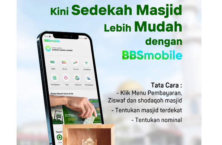 Sumenep, Jatim|suaranasionalnews.co.id – Bank BPRS Bhakti Sumekar kini menghadirkan pelayanan baru bagi masyarakat yang ingin bersedekah, infak dan wakaf ke masjid secara online melalui fitur aplikasi BBS Mobile.