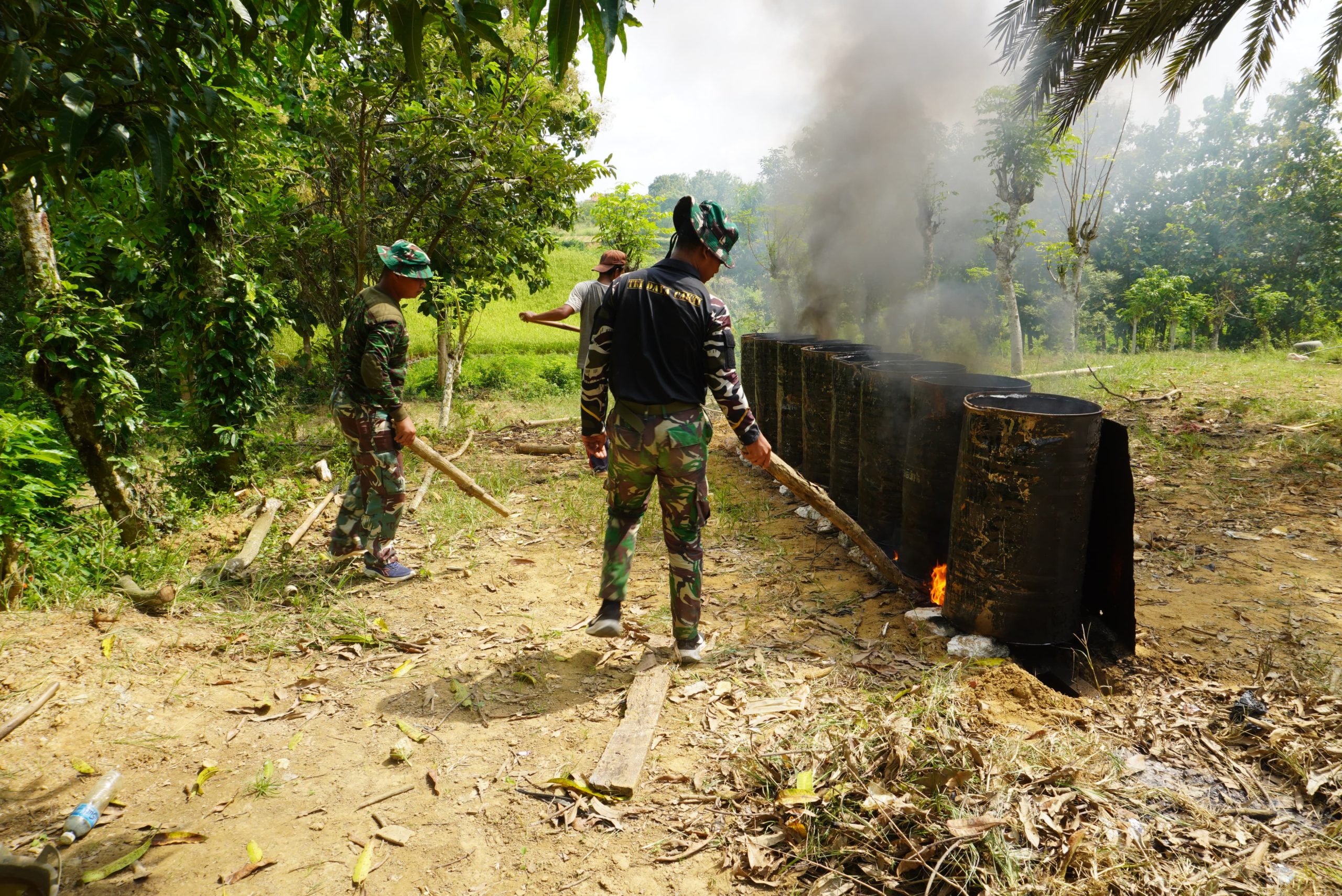 Salah satu anggota Satgas TMMD, Serda Aldo, turut terlibat langsung dalam proses pengerjaan, termasuk melaksanakan pembakaran aspal. Proses ini dilakukan karena aspal tidak bisa langsung dituangkan ke permukaan jalan, melainkan harus dipanaskan terlebih dahulu agar memiliki daya rekat yang kuat sehingga hasil pengaspalan lebih kokoh.