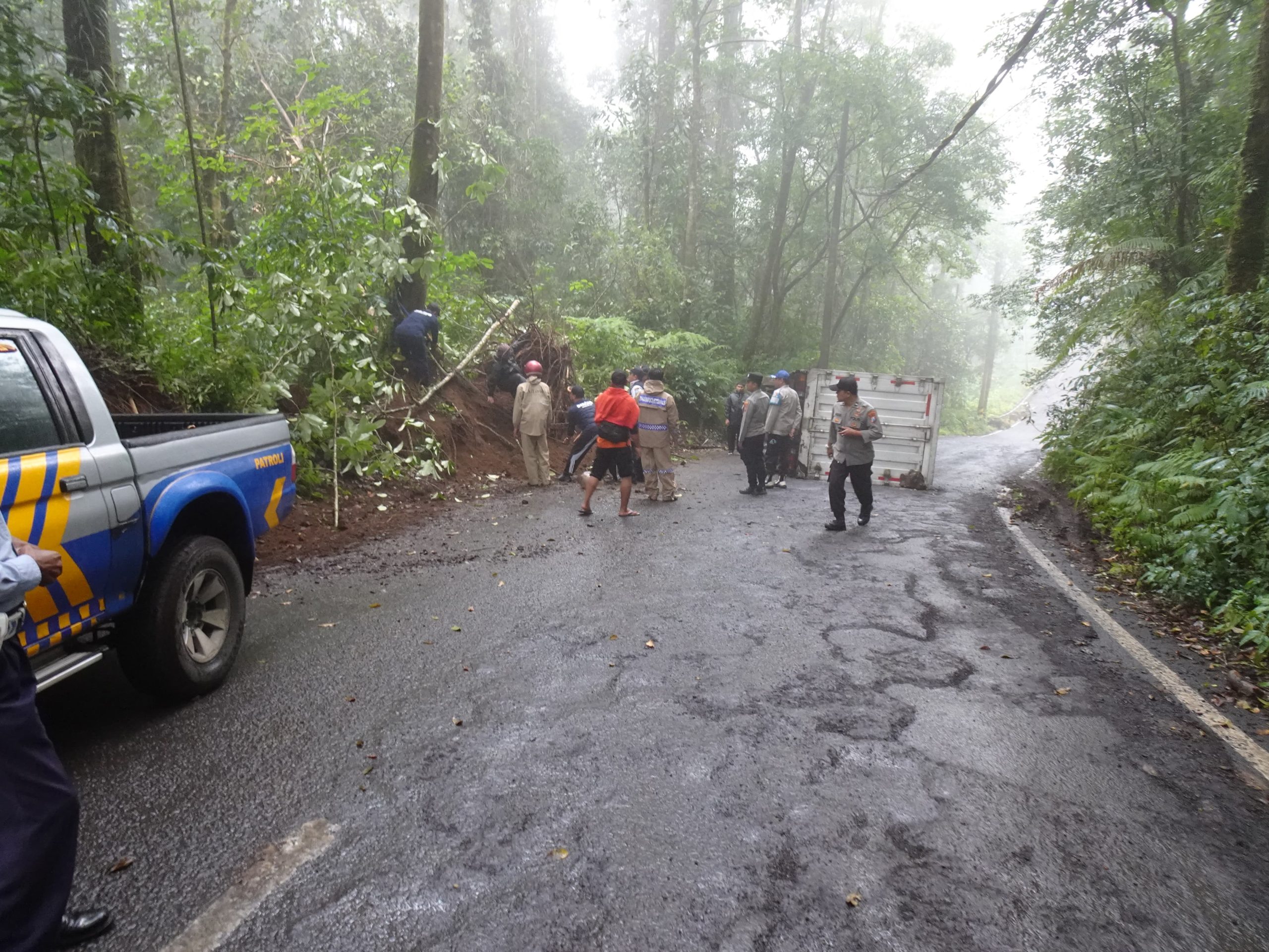 “Evakuasi kami lakukan secara hati-hati karena lokasi kejadian berada di tanjakan sempit dan licin akibat hujan,” ujarnya.
