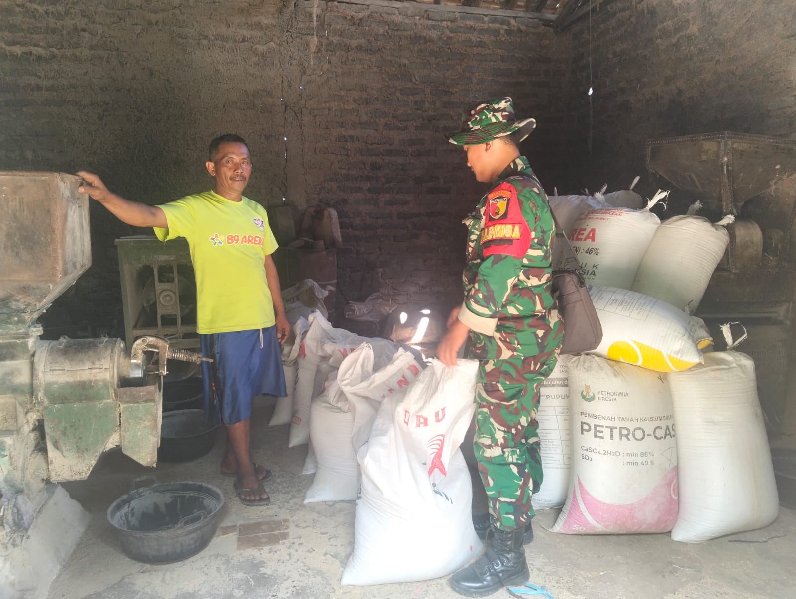 SUMENEP – Babinsa Koramil 0827/12 Dasuk Serda Kharis melakukan pengecekan tempat penggilingan padi dan gudang padi dan beras milik Suwandi warga Desa Batu belah Kecamatan Dasuk Kabupaten Sumenep. Rabu (08/05/2025).