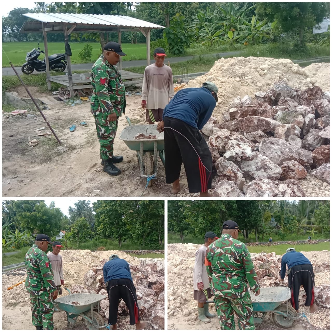 SUMENEP – Wujud kepedulian TNI terhadap masyarakat terus ditunjukkan melalui kegiatan karya bakti di wilayah binaan. Babinsa Koramil 0827/17 Dungkek Kopka Heriyanto melaksanakan kegiatan karya bakti membantu warga mengangkut bahan material untuk pembangunan rumah di Dusun Poja, Desa Candi, Kecamatan Dungkek, Kabupaten Sumenep, Kamis (01/01/2026).