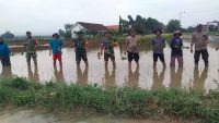 Danramil Kapten Inf Didik Prasetiyo menjelaskan gerakan tanam padi merupakan salah satu program nasional untuk menuju swasembada pangan.