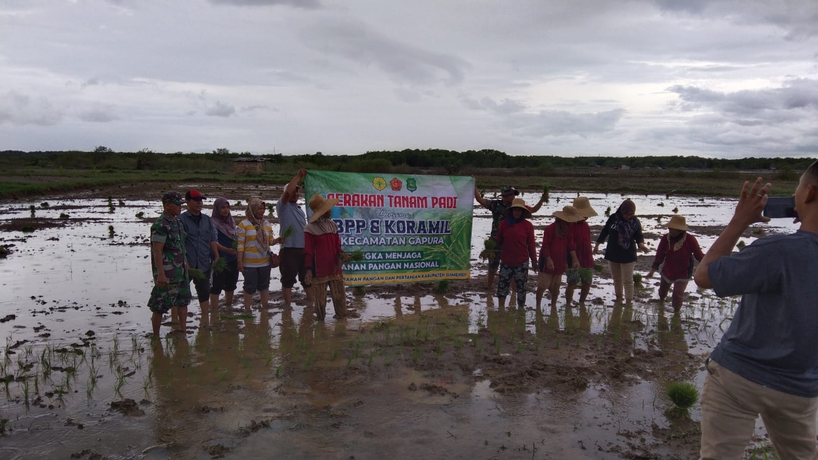Penanaman padi dilakukan dilahan seluas 0,5 hektar bersama kelompok tani Makmur Jaya. Hadir juga PPL dan Korluh Kecamatan Gapura.