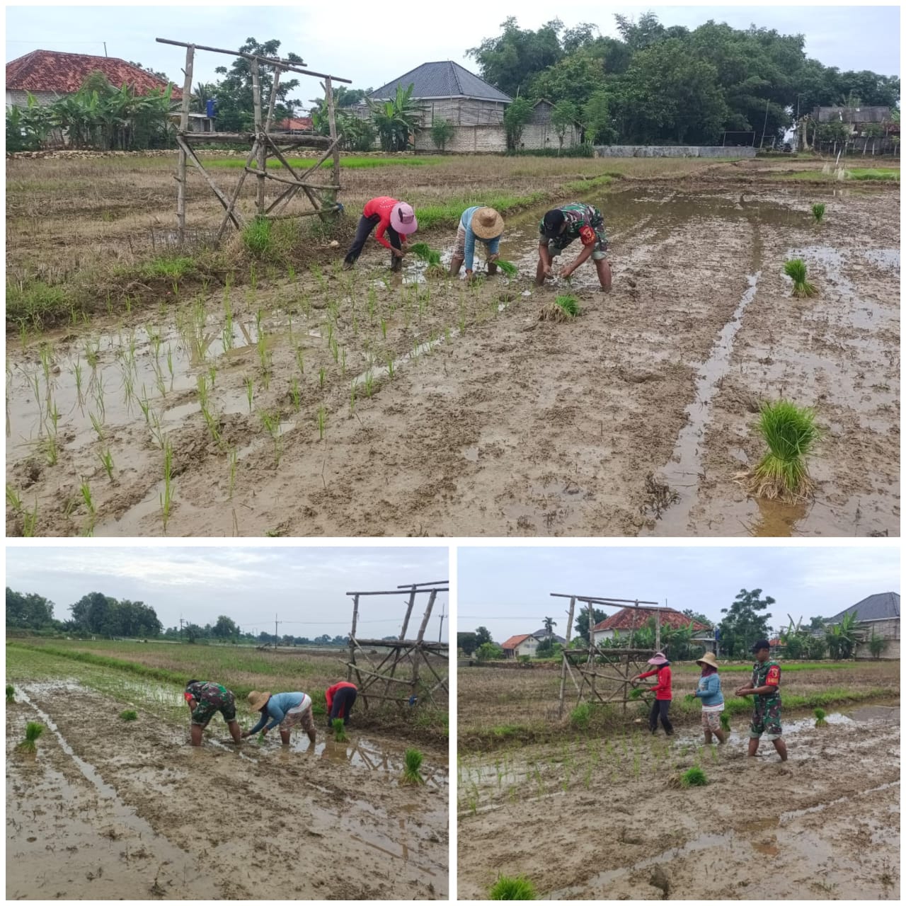 Babinsa Desa Langsar Koramil 0827/06 Saronggi, Koptu Sugiyanto, melaksanakan penanaman padi bersama warga binaan dalam rangka Program Akselerasi Tanam (PAT), Minggu (11/1/2026). Kegiatan tersebut dilakukan di lahan pertanian seluas 0,5 hektare di Desa Langsar.