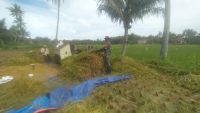 Babinsa Koramil 0827/04 Bluto Serda Achmad Sufyanto yang turut membantu mengaku cukup puas atas produksi padi saat ini.