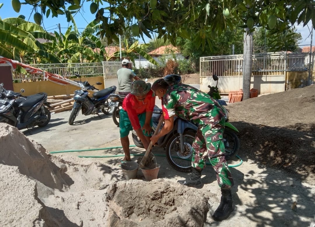 SUMENEP – Wujud kepedulian terhadap masyarakat di wilayah, Serda Pitoyo Babinsa Koramil 0827/06 Saronggi Serka Abiyoso melaksanakan kegiatan bakti TNI membantu warga binaan rehab rumah di dusun Pangleman Desa Tanjung Kecamatan Saronggi Kabupaten Sumenep, Sabtu (19/4/2025).