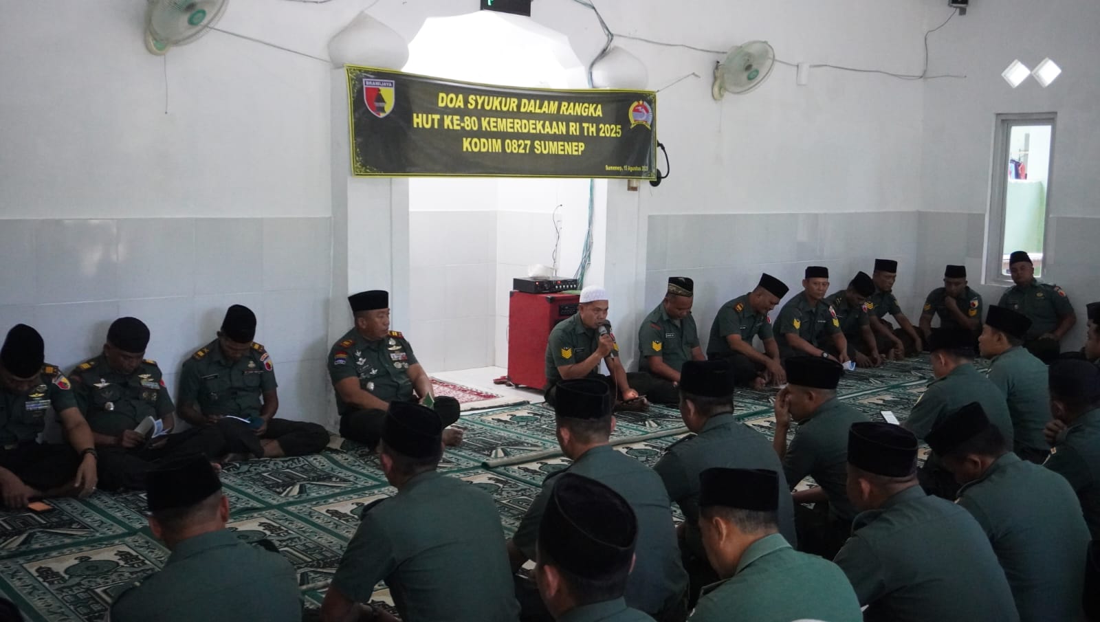 SUMENEP – Kodim 0827/Sumenep menggelar doa bersama dalam rangka memperingati Hari Ulang Tahun (HUT) ke-80 Republik Indonesia tahun 2025. Kegiatan berlangsung di Mushola Darussalam, Makodim 0827/Sumenep, Jumat (15/8/2025).