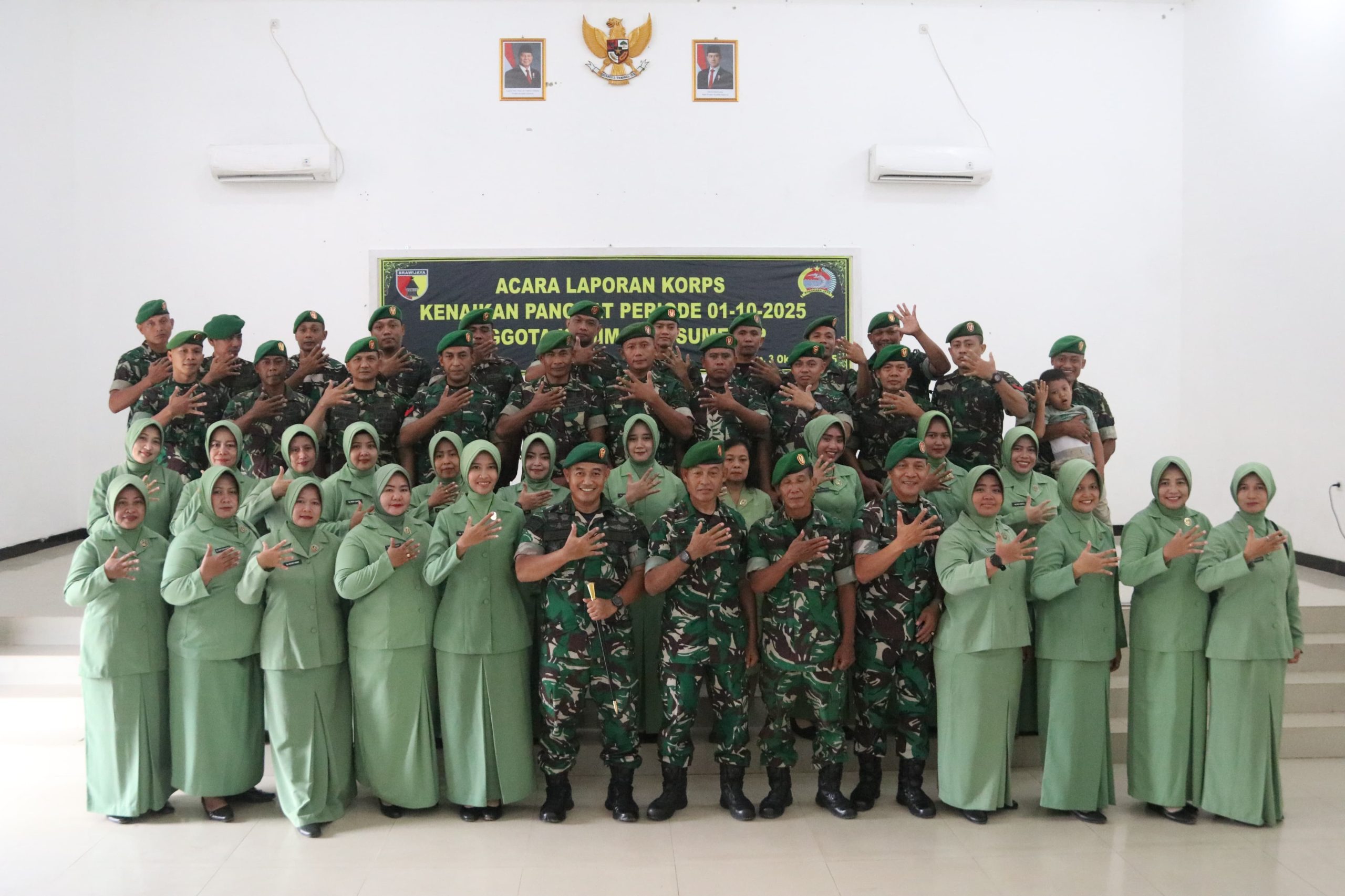 “Selamat kepada seluruh personel yang telah naik pangkat satu tingkat lebih tinggi. Syukurilah anugerah ini dengan penuh tanggung jawab, semoga menjadi penyemangat dalam mewujudkan cita-cita dan pengabdian yang lebih baik,” kata Letkol Arm Bendi.