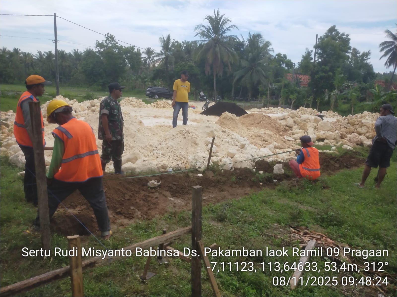 Kegiatan ini mendapat pendampingan langsung dari Anggota Koramil 0827/09 Pragaan dipimpin Bati Tuud Pelda Kusnadi. Turut hadir pula Waslap Bapak Matharum serta Kepala Tukang, Bapak Su’udi.