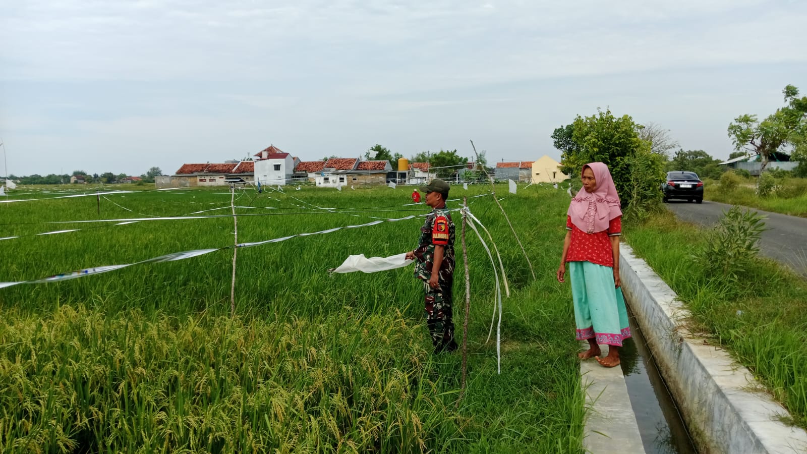 Sumenep – Dalam rangka membantu meningkatkan produksi pertanian dan mengurangi kerugian akibat hama burung, Babinsa Koramil 16/Gapura Kodim 0827/Sumenep Serka Edi Wardiyanto membantu warga mengusir hama burung di sawah yang terletak di Desa Gapura Tengah Kecamatan Gapura Kabupaten Sumenep, Selasa (22/7/2025).