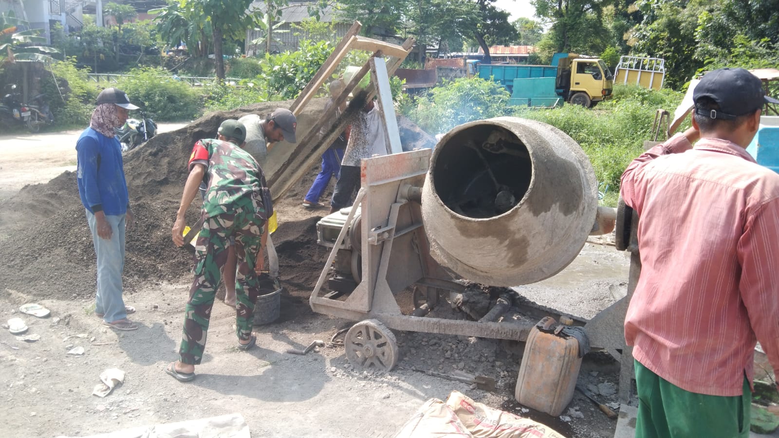 SUMENEP – Dalam upaya meningkatkan infrastruktur dan memperlancar akses transportasi warga, Babinsa Koramil 09/Peragaan Kodim 0827/Sumenep, Serda Purwanto, bersama masyarakat Desa Rombasan melaksanakan kegiatan karya bakti pengecoran jalan pada Kamis (18/09/2025).