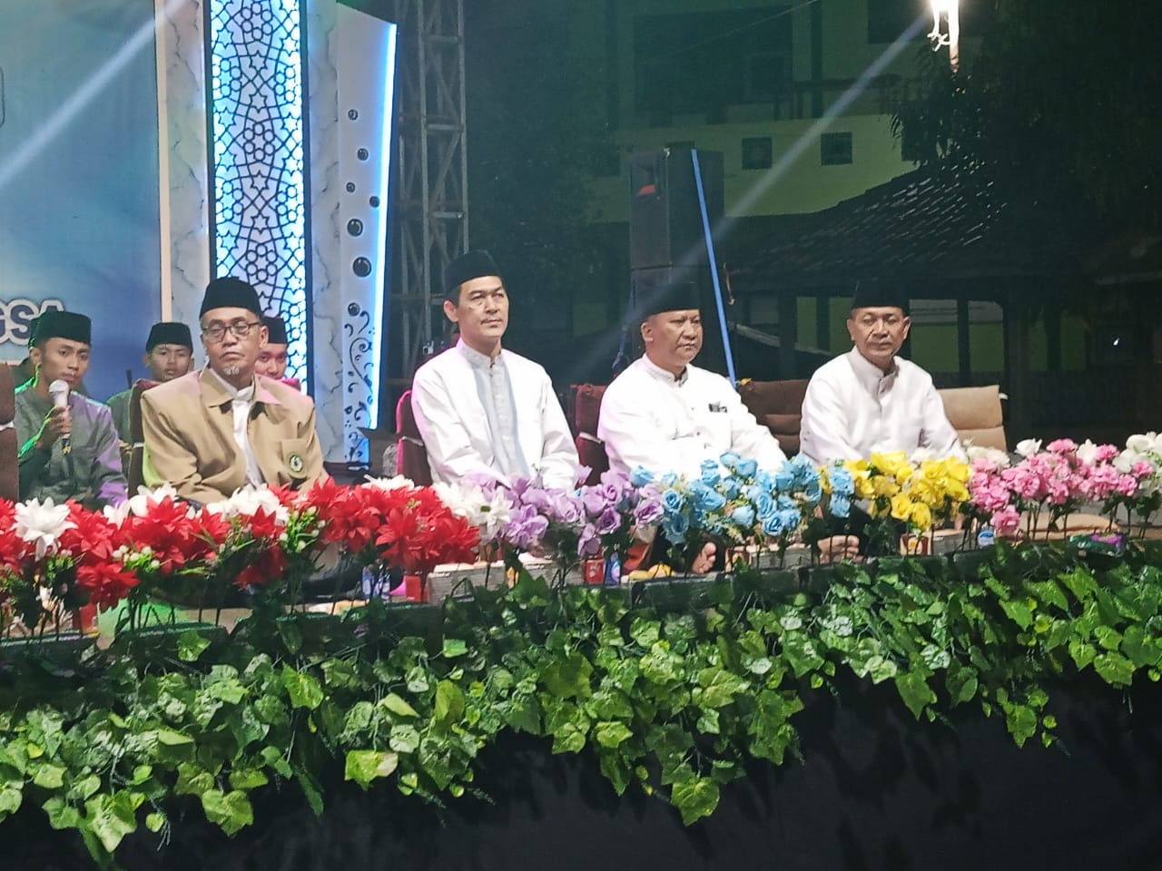 Suasana acara berlangsung khidmat dengan lantunan shalawat dan tausiyah keagamaan yang menekankan pentingnya akhlak, kepedulian sosial, dan tanggung jawab ekologis generasi muda.