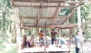 Seorang warga yang kami temui di lokasi pembangunan posko menjelaskan bahwa saat ini mereka sedang membangun 3 posko yang nantinya digunakan untuk menjaga tanaman mereka yang sudah ditanami di areal tersebut.