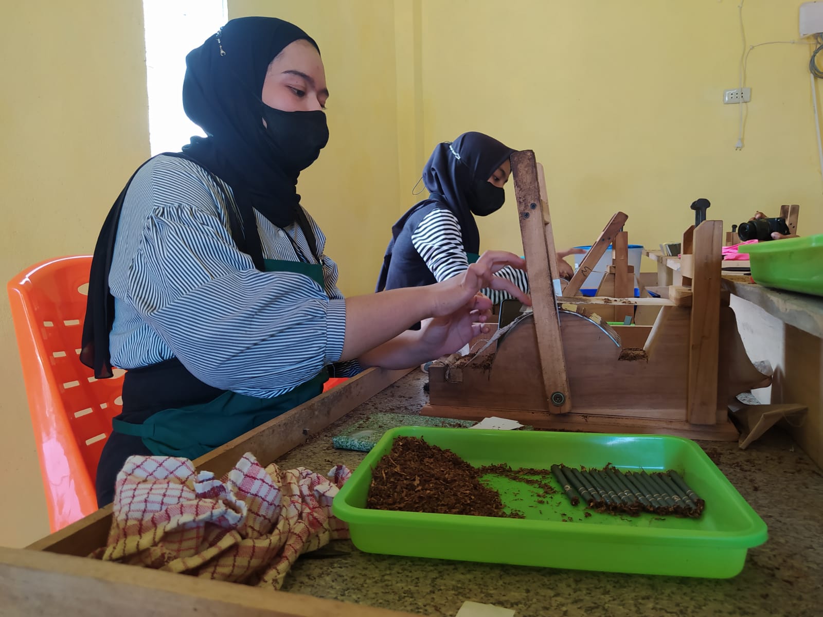 Kalau saya kebetulan rumah dekat dengan perusahaan rokok lokal di sini, tapi yang pasti ratusan buruh rokok yang bekerja bersama saya itu dari desa lain juga, banyak sekali. Makanya kami sangat berterimakasih atas adanya perusahaan rokok lokal ini. ( NDy)
