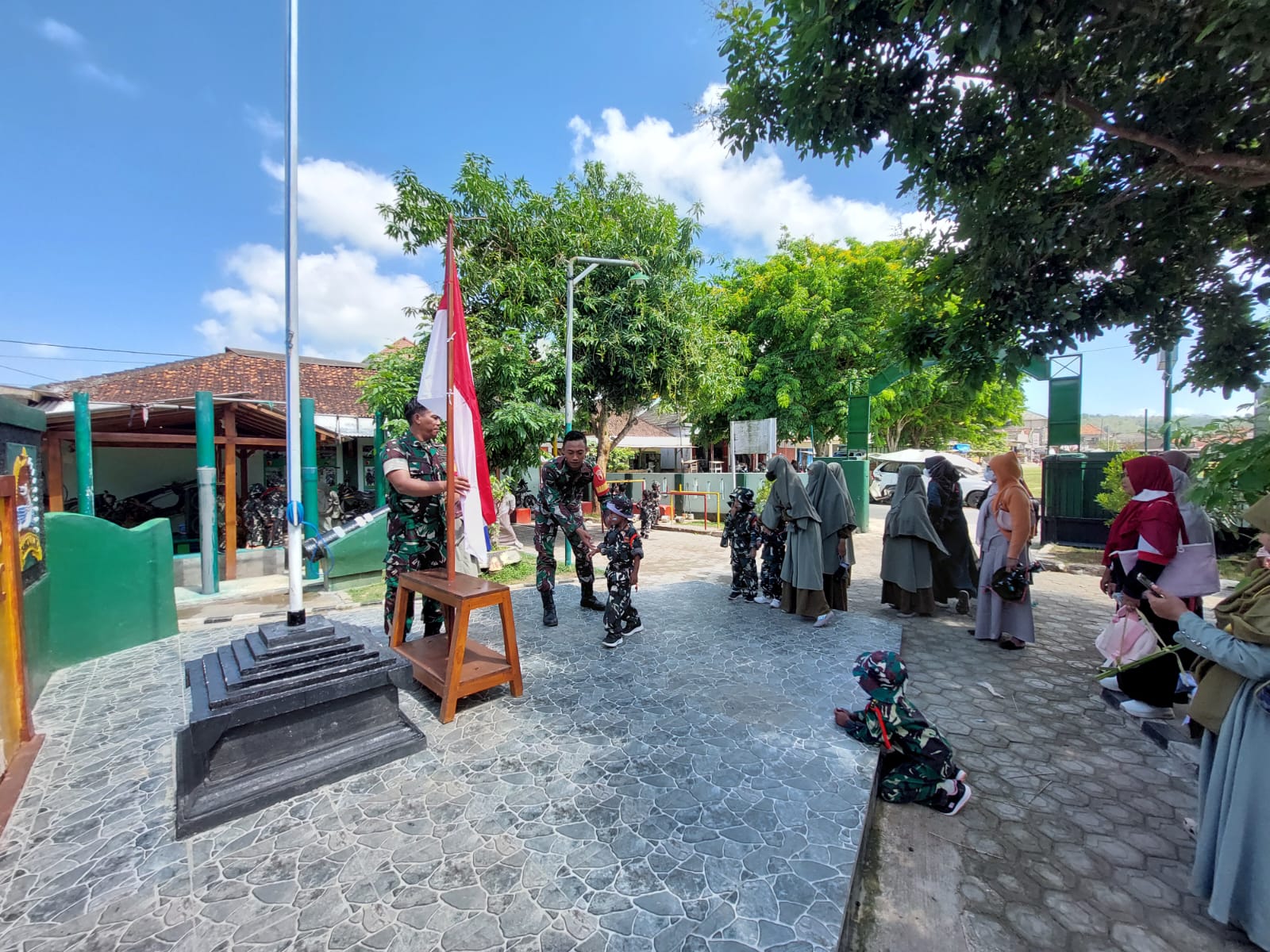 Kegiatan ini merupakan bagian dari pembelajaran luar kelas yang bertujuan memberikan pengalaman baru kepada anak-anak dengan mengenal lingkungan TNI, khususnya di Koramil.
