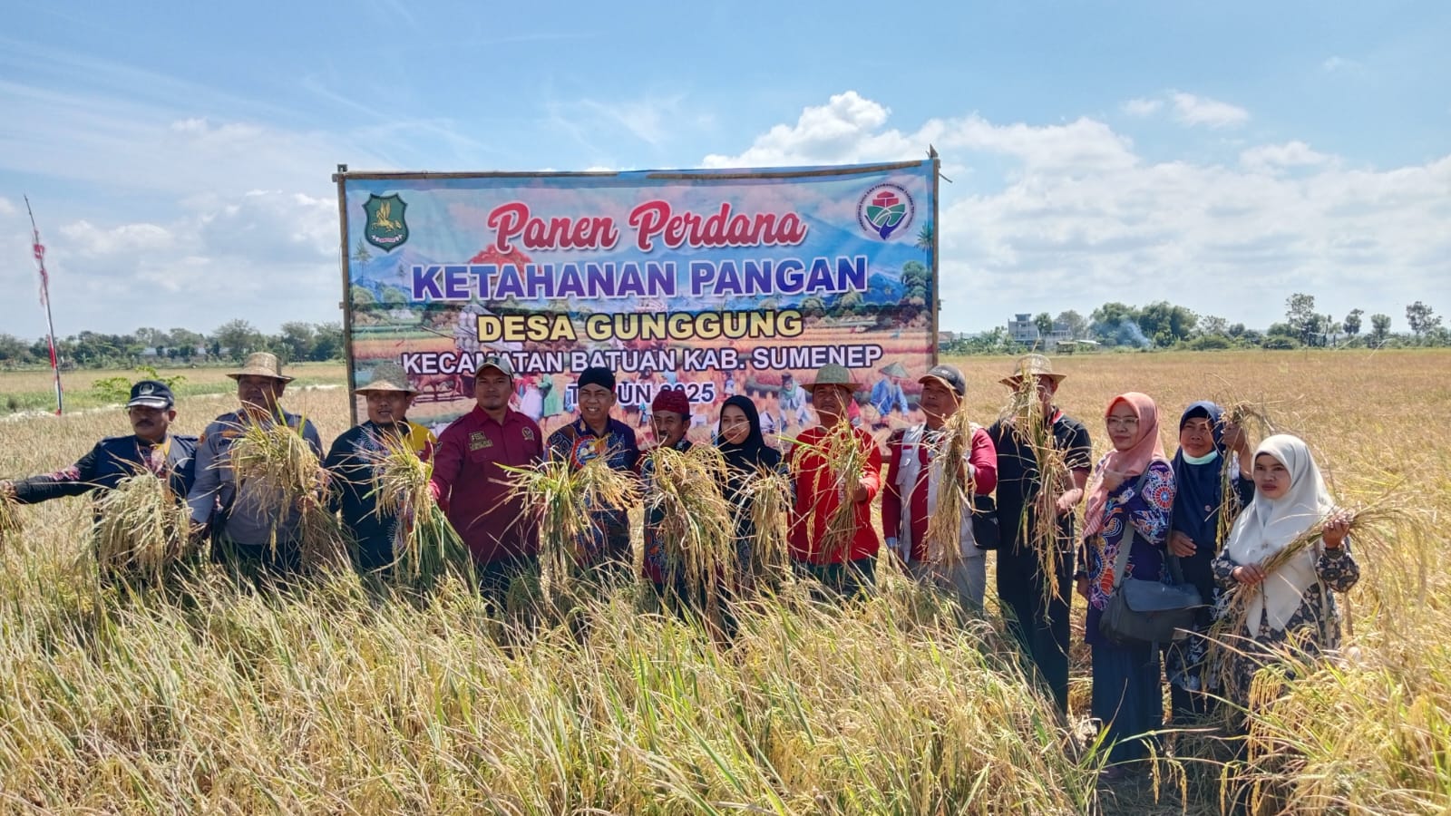 Panen tersebut turut dihadiri sejumlah pejabat dan pihak terkait, di antaranya Kadis PMD Kabupaten Sumenep Anwar, Plt Camat Batuan Joko Satrio, Danpos Ramil Batuan Serma Khoirul, Kapolsek Batuan Ipda Abuhairi, TAPM Bidang Pemberdayaan Masyarakat Wasi, Sekdes Gunggung Busar, Pendamping Kecamatan Batuan Sri Wahyuni, PPL dan Korluh Kecamatan Batuan, serta para petani Poktan Sumber Jaya.