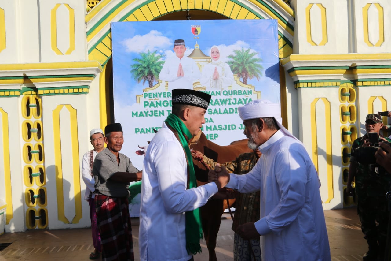 Dalam kegiatan tersebut, Mayjen TNI Rudy Saladin menyerahkan satu ekor sapi, diikuti oleh Brigjen TNI Danny Alkadrie yang juga menyerahkan satu ekor sapi kurban.