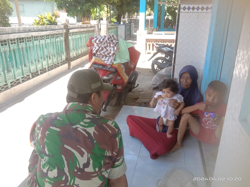SUMENEP – Babinsa Koramil 19/Sapeken Kodim 0827/Sumenep Koptu Yusuf melaksanakan kegiatan komunikasi sosial tentang Percepatan Penurunan Stunting bersama warganya serta mengecek perkembangan balita yang mengalami stunting yang bertempat di Desa Paliat Kecamatan Sapeken Kabupaten Sumenep, Minggu (27/4/2025).