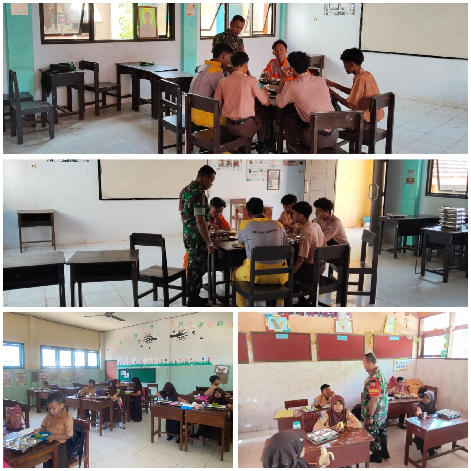 Babinsa Serma Muh. Ridwan, menegaskan bahwa pengawalan dilakukan sejak pagi hari untuk menjamin kesiapan dapur hingga distribusi ke sekolah-sekolah.