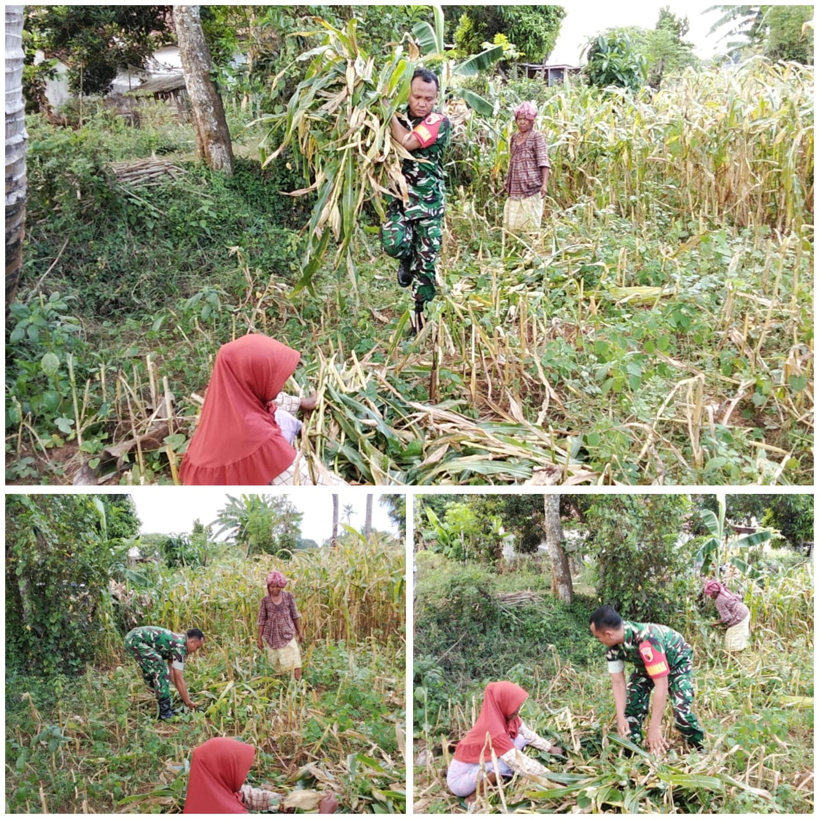 SUMENEP – Wujud kepedulian TNI terhadap ketahanan pangan terus ditunjukkan oleh Babinsa Koramil 0827/12 Dasuk. Babinsa Sertu Feri, turut membantu petani melaksanakan panen jagung di wilayah Desa Dasuk, Kecamatan Dasuk, Kabupaten Sumenep, Madura, Jawa Timur, pada Minggu (11/1/2026).