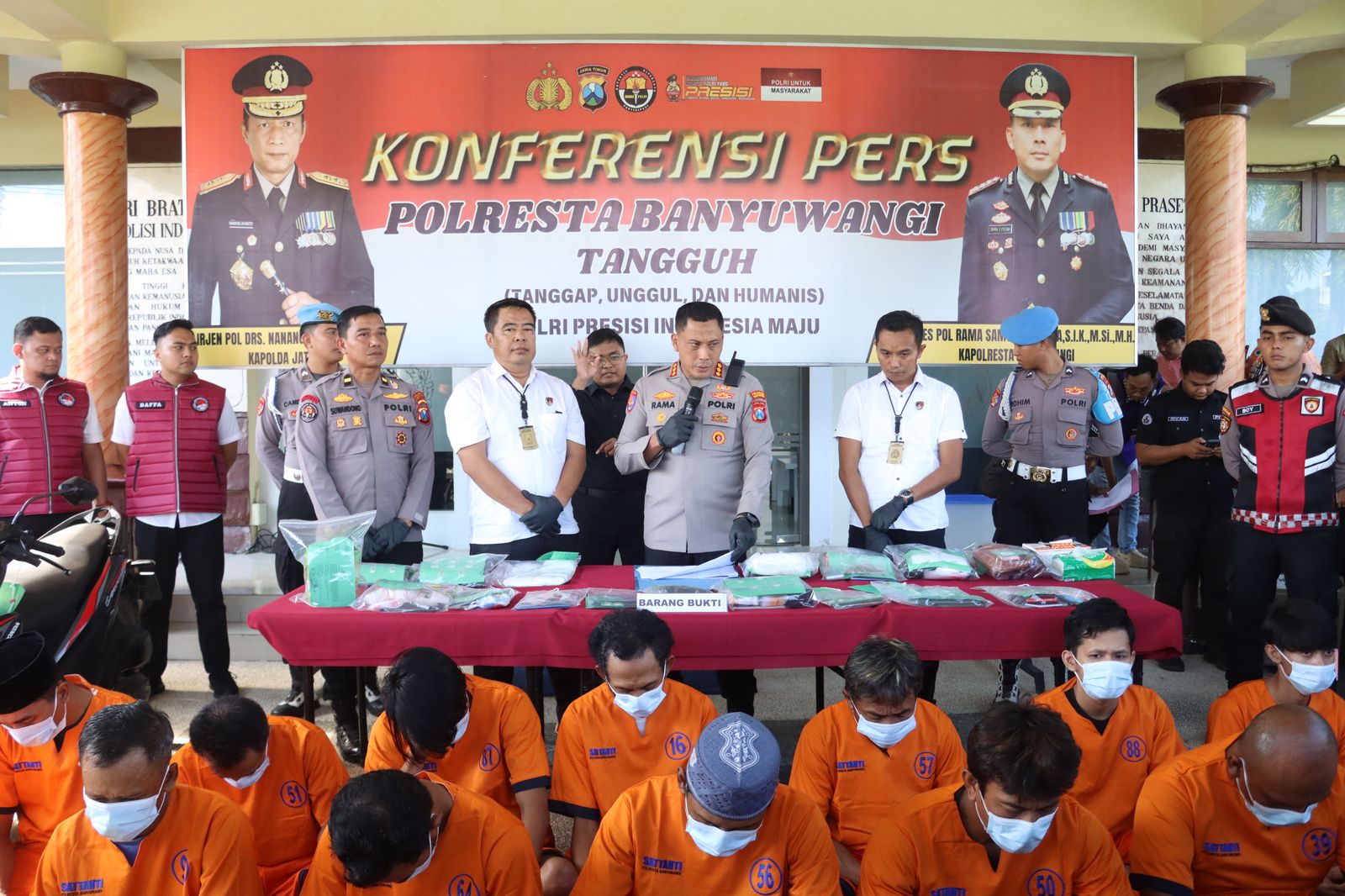 Banyuwangi, Jatim | suaranasionalnews.co.id – Kepolisian Resor Kota (Polresta) Banyuwangi, Polda Jawa Timur, kembali menunjukkan komitmennya dalam memerangi peredaran gelap narkotika. Dalam konferensi pers yang digelar di halaman Mapolresta Banyuwangi, Rabu (28/5/2025), Kapolresta Banyuwangi Kombes Pol Rama Samtama Putra, didampingi Kasat Narkoba AKP Nanang Sugiyono, S.H., M.H., mengungkap hasil pengungkapan kasus narkoba selama bulan Mei 2025.