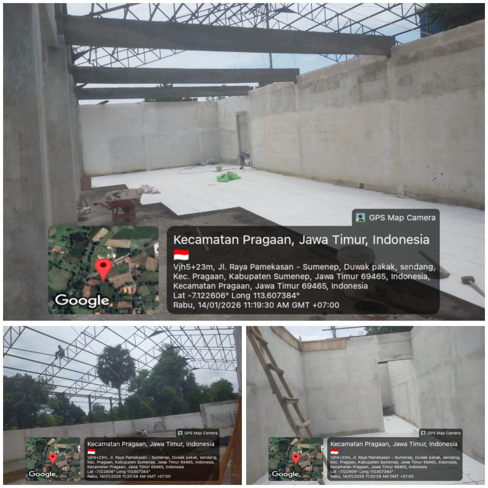 SUMENEP – Progres pembangunan Koperasi Desa Merah Putih yang berlokasi di Dusun Duwak Paka’, Desa Sendang, Kecamatan Pragaan, Kabupaten Sumenep, terus menunjukkan perkembangan signifikan. Hingga Rabu (14/1/2026), pembangunan telah memasuki tahap pekerjaan struktur dan pemasangan rangka atap.