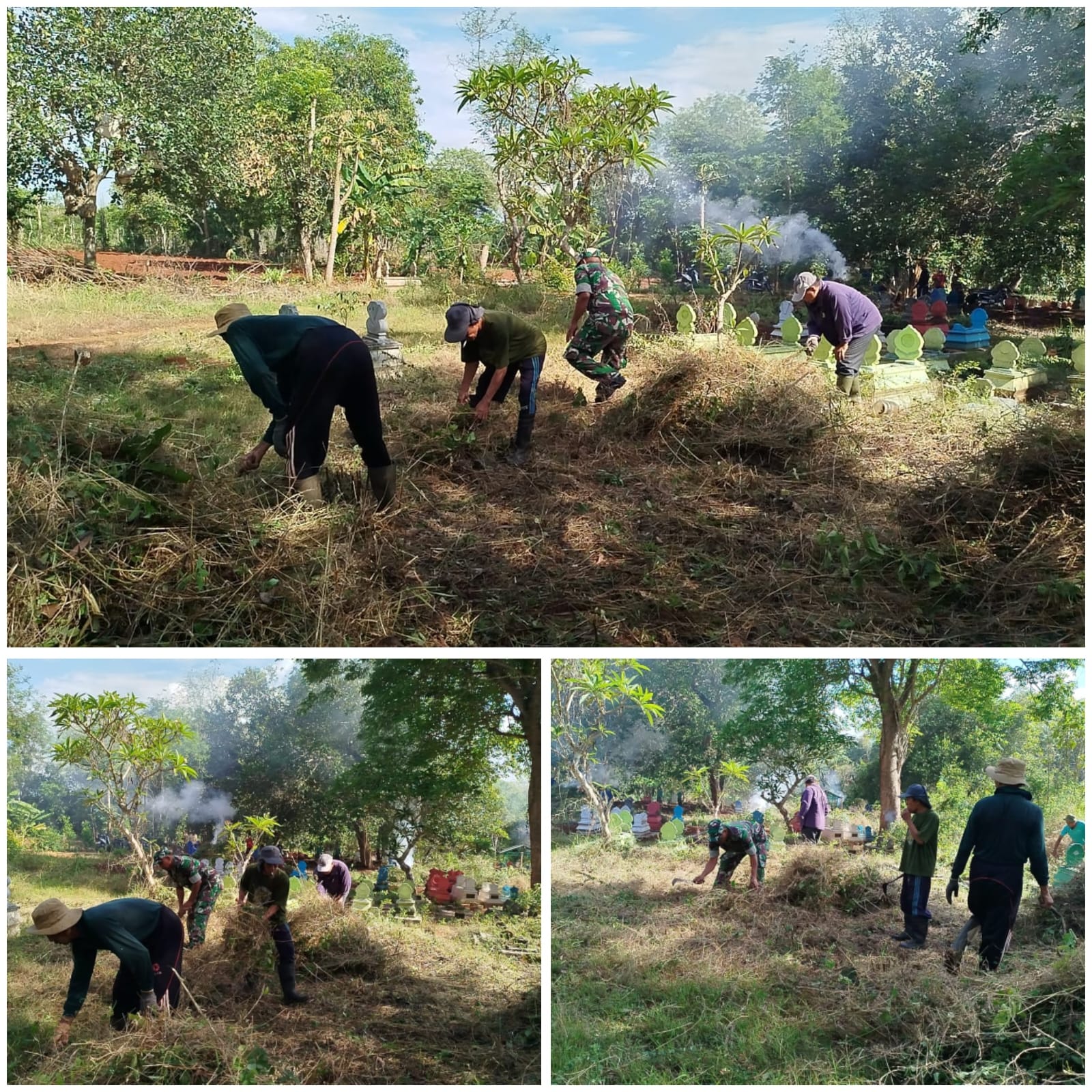 “Dengan kegiatan gotong royong ini bertujuan untuk membiasakan warga setempat dalam kehidupan sehari hari, mereka dapat mencintai lingkungan dengan cara menjaga kebersihan bersama sama seperti tempat pemakaman umum, ” ungkap Babinsa Serka Abiyoso.