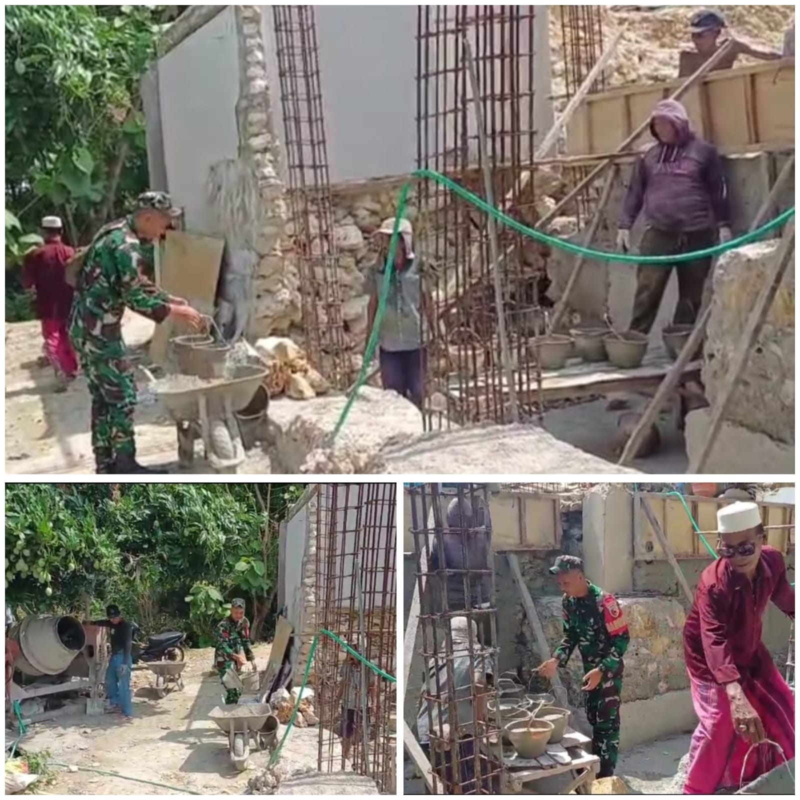 SUMENEP – Wujud nyata kepedulian TNI terhadap masyarakat terus ditunjukkan oleh Babinsa Koramil 0827/21 Ra’as. Babinsa Desa Poteran, Praka Danni, turut membantu pembangunan rumah warga dengan memanfaatkan mesin molen sebagai alat pencampur semen, bertempat di Desa Poteran, Kecamatan Ra’as, Kabupaten Sumenep, Madura, Jawa Timur, pada Senin (15/12/2025).